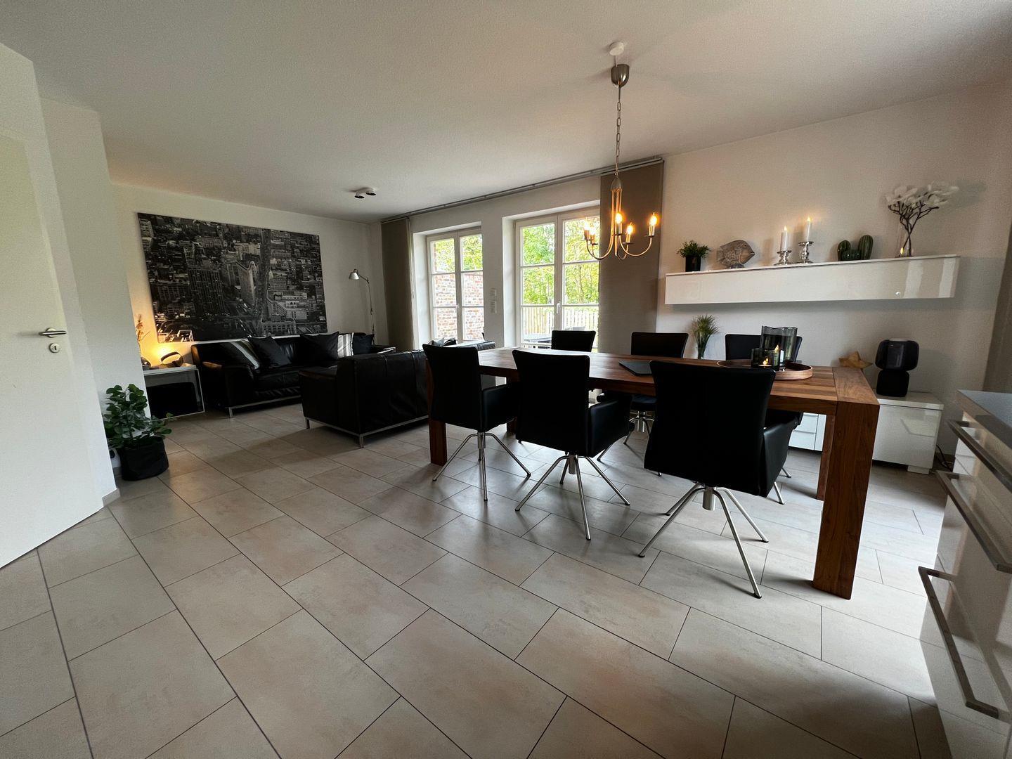 auf 2 Etagen, das hochwertig und modern ausgestattet ist. Erdgeschoss:Wohnraum