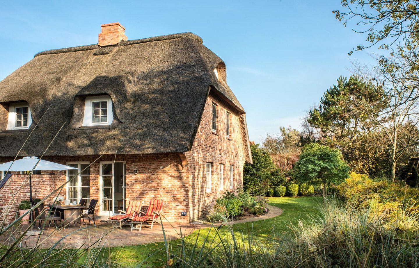 Exklusives Friesenhaus unter Reet im Reetdachviertel von St. Peter-Ording mit Terrasse und Garten.