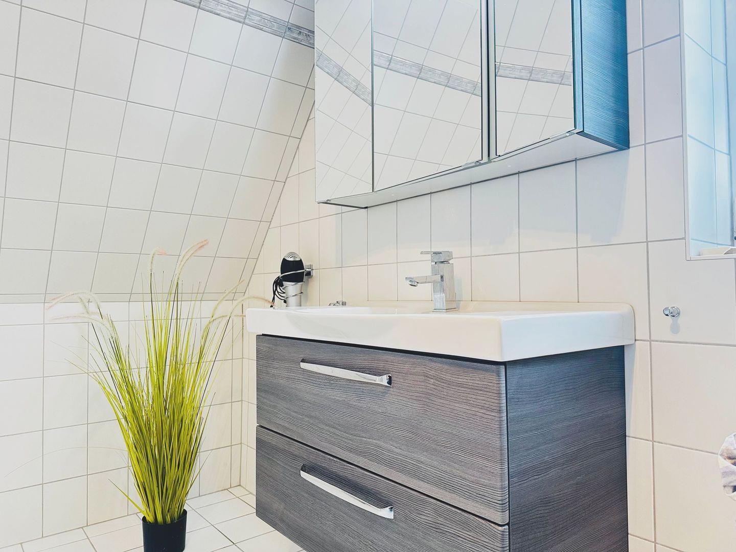 Im Erdgeschoss befindet sich ein Gäste-WC, eine separate Küche inkl. Geschirrspüler und Essecke.