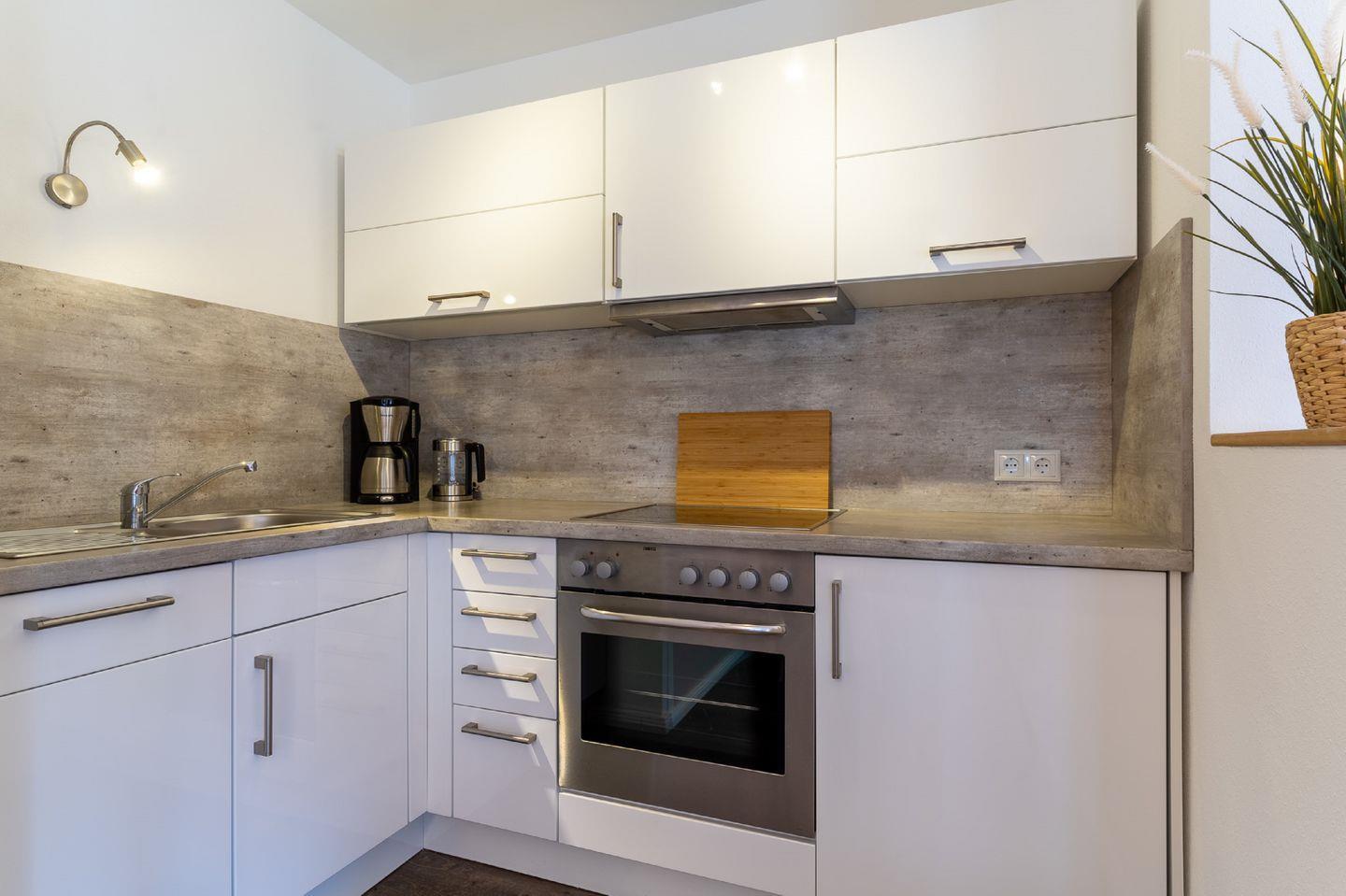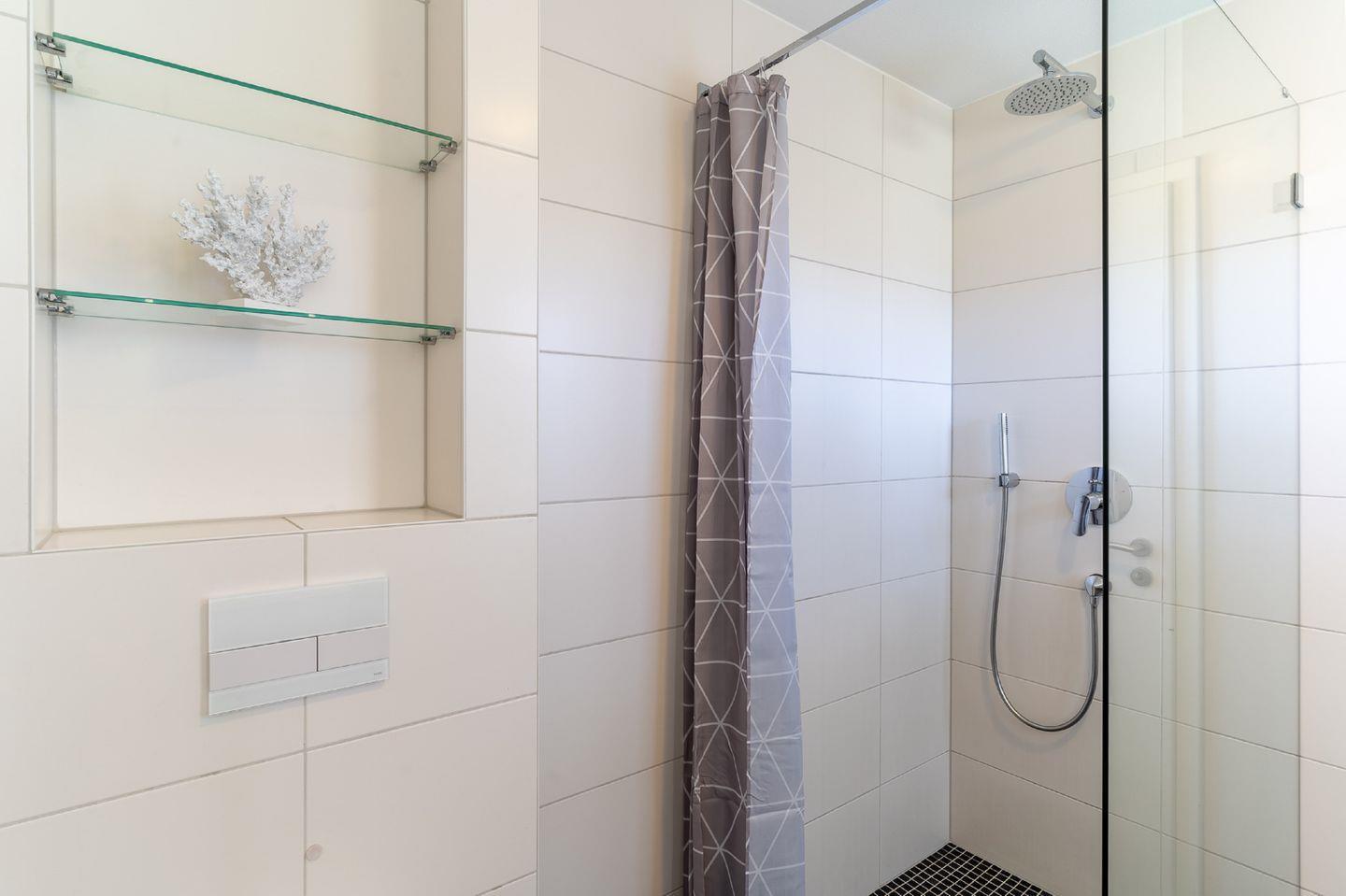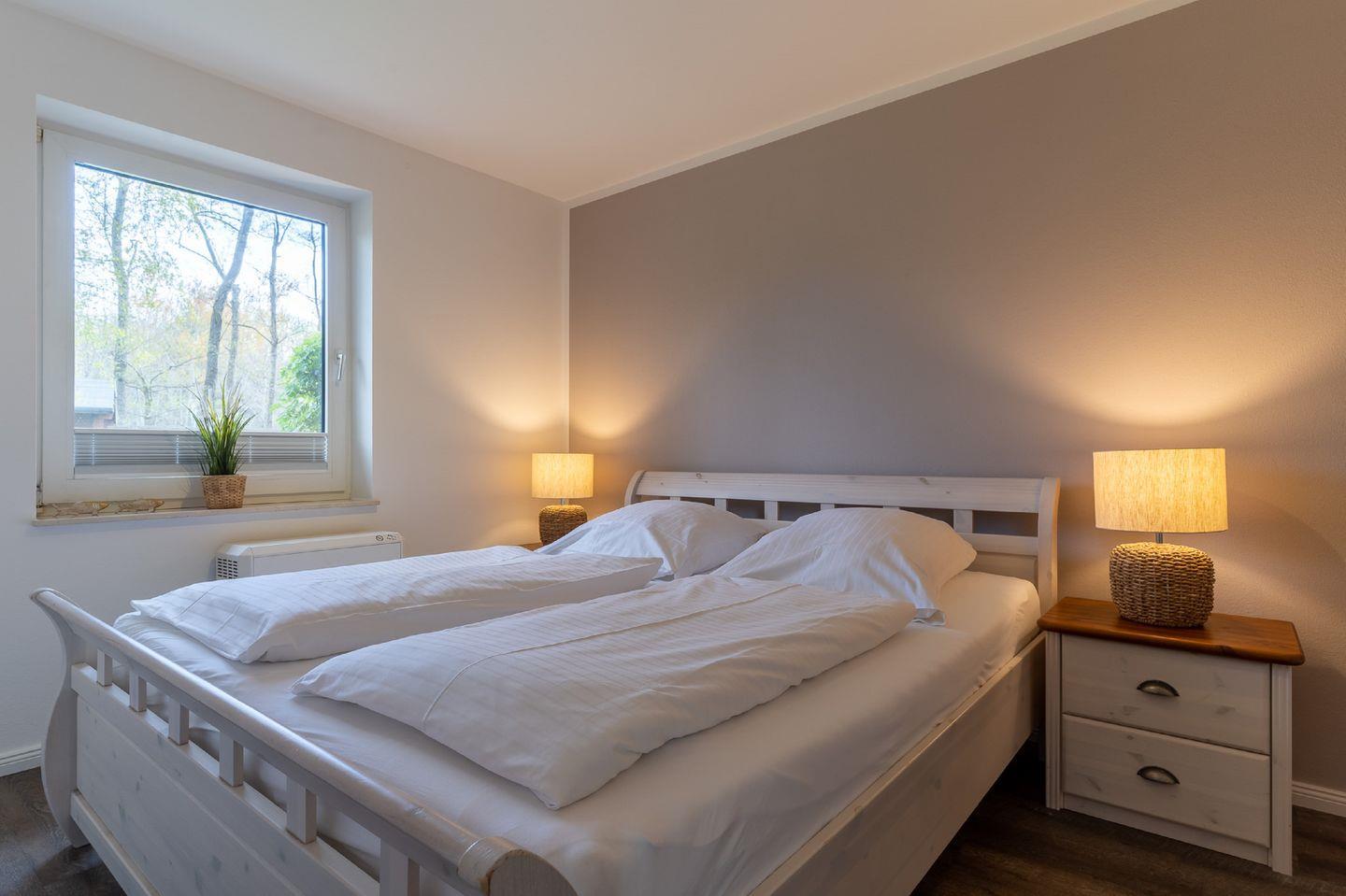 Das Schlafzimmer verfügt über ein Doppelbett, das Badezimmer über eine ebenerdige Dusche und WC. Ein Flur sowie eine Terrasse mit Gartenmöbeln und Strandkorb (April - Oktober) komplettieren die Wohnung.