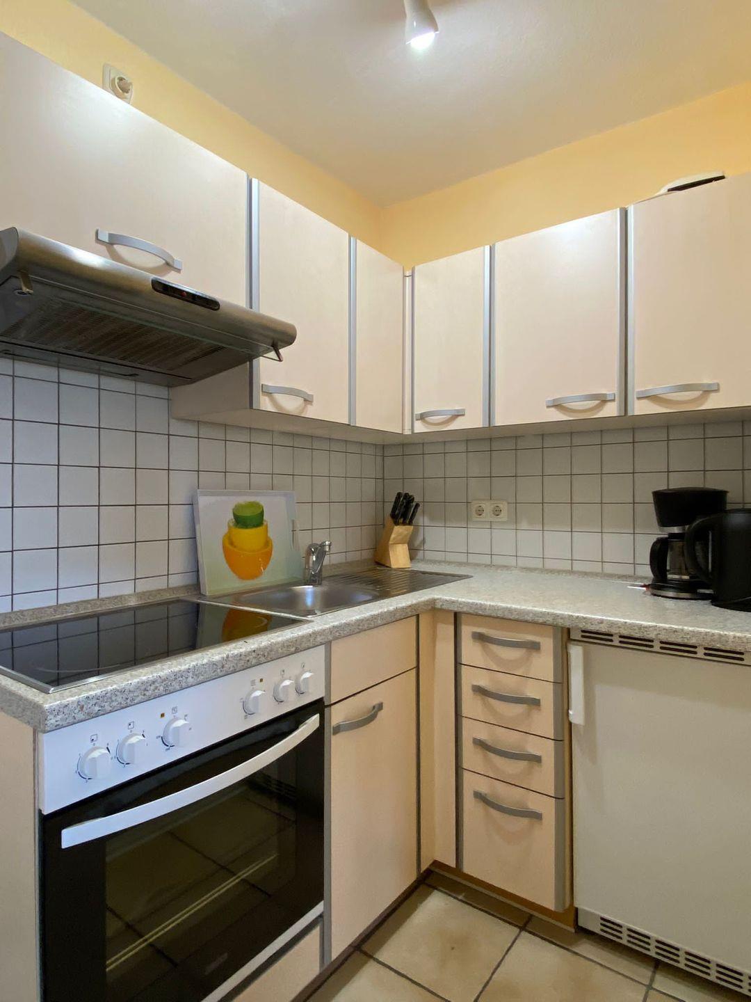 Die ca. 45 qm große Wohnung im Erdgeschoss bietet eine qualitativ gute Ausstattung, darunter Kaffeemaschine, Toaster, Wasserkocher, Herd/Backofen, Sat-TV und Radio/Kassettenrecorder.