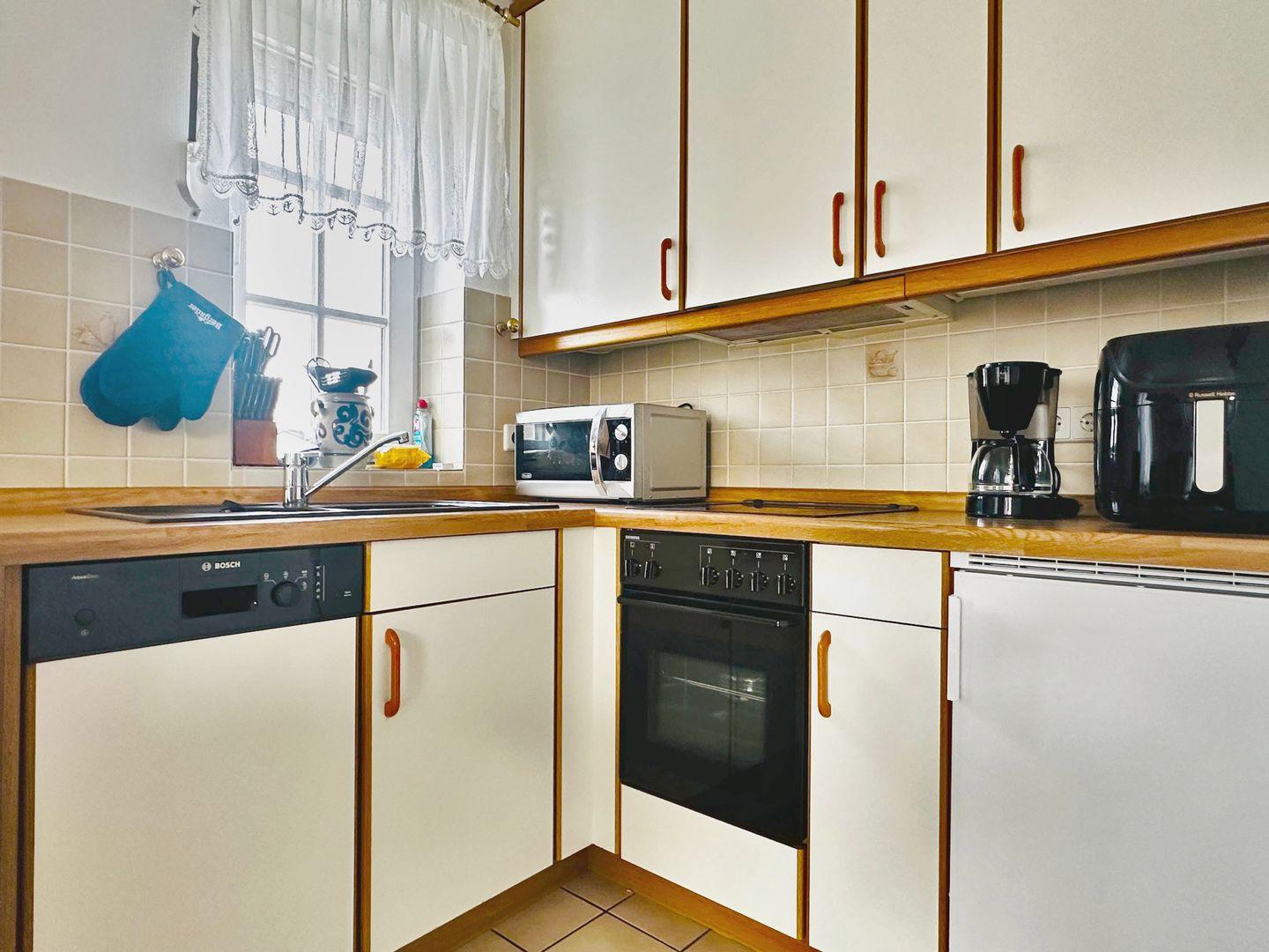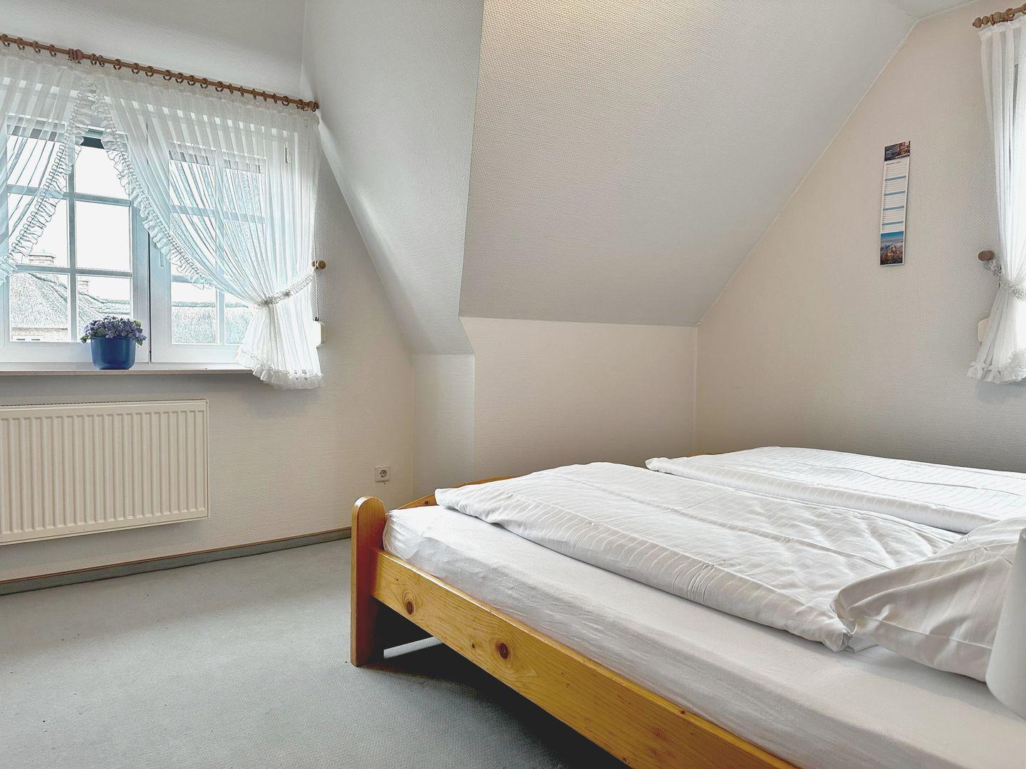 Das gemütliche Reihenendhaus im Ortsteil Dorf erstreckt sich über ca. 60 qm und bietet im Erdgeschoss einen Flur, einen Wohnraum mit offener Küche (ausgestattet mit Herd, Backofen, Geschirrspüler) sowie ein Bad mit Dusche/WC. Im Obergeschoss befinden sich zwei Schlafzimmer mit einem Doppelbett und zwei Einzelbetten. Zur Ausstattung gehören außerdem eine Terrasse und ein PKW-Stellplatz. Die Nutzung einer Gemeinschaftswaschmaschine (Münzautomat) im Gemeinschaftskellerraum ist möglich.