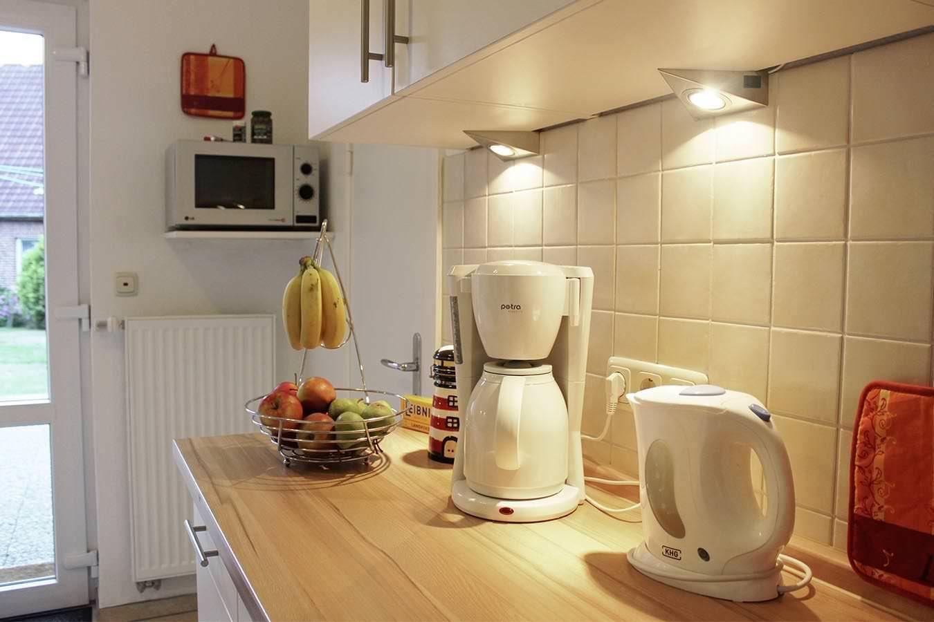 Die separate Küche ist mit Geschirrspüler, Herd, Backofen und Mikrowelle ausgestattet und lädt zu gemeinsamen Kocherlebnissen ein.