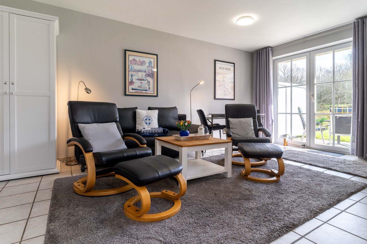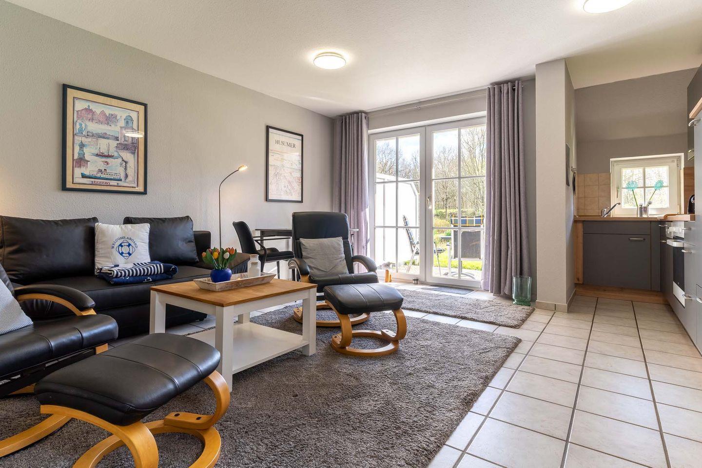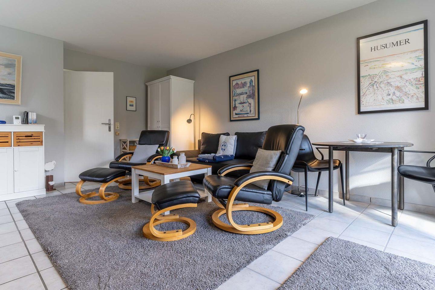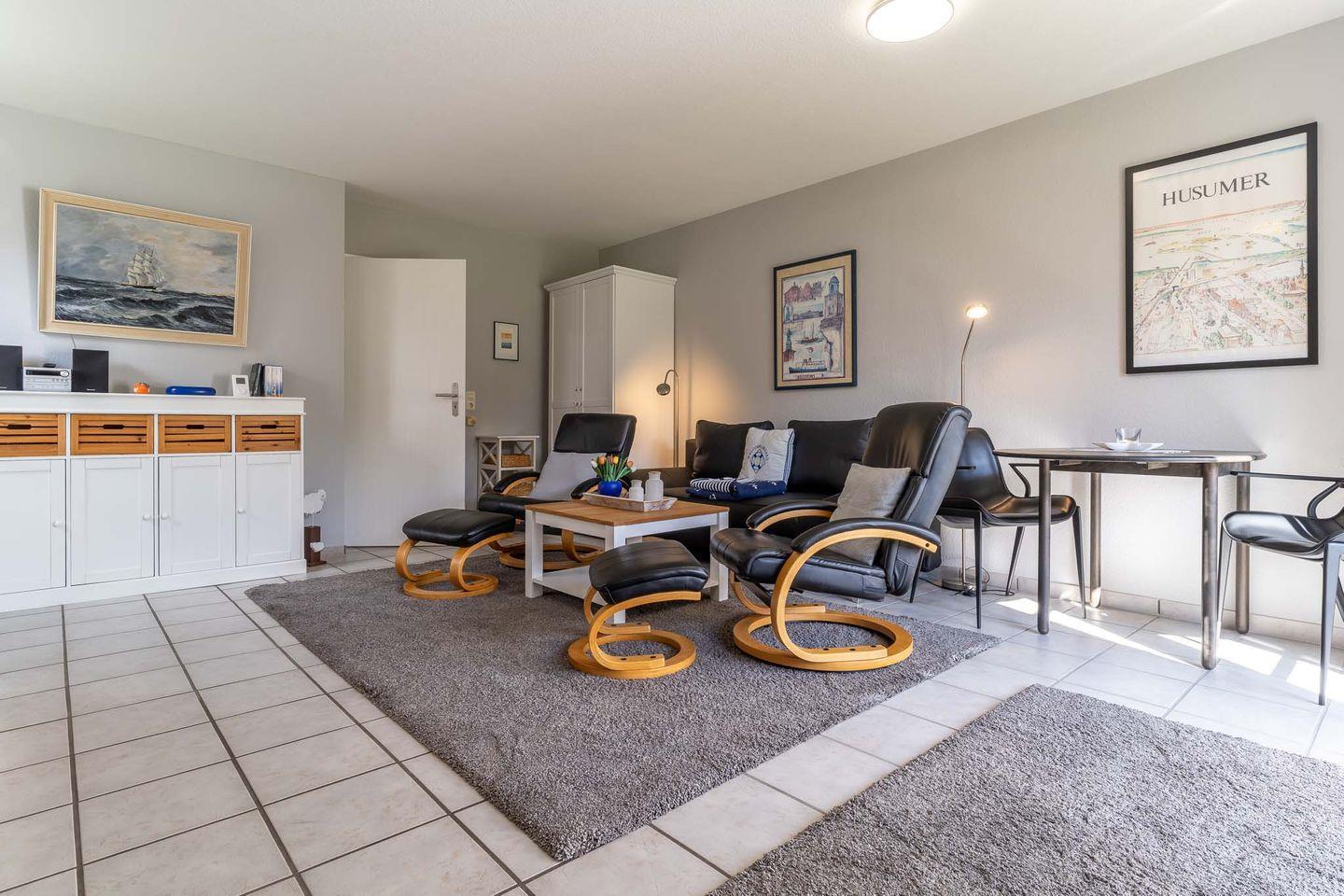Zum Seedeich mit Strandübergang ca. 30 Minuten zu Fuß. 42 qm große Wohnung im Erdgeschoss mit 1 Schlafraum (Doppelbett), Wohnbereich, offener Küche, Geschirrspüler, Backofen, Bad mit Dusche, Flachbildschirm, Radio. Terrasse in Süd-West-Lage. WLAN vorhanden. PKW-Stellplatz Nr. 1 am Haus. Keine Haustiere! Nichtraucherwohnung!