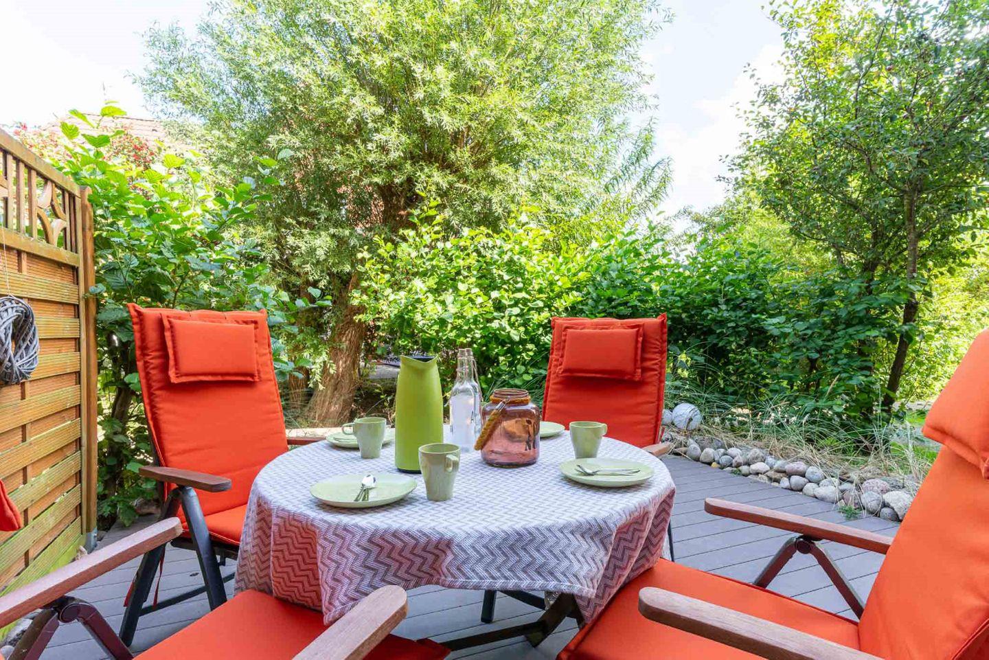 Die Ferienwohnung, ca. 49 m² groß und im Erdgeschoss gelegen und besticht durch ihren charmanten schwedischen Stil mit liebevoller Einrichtung.
