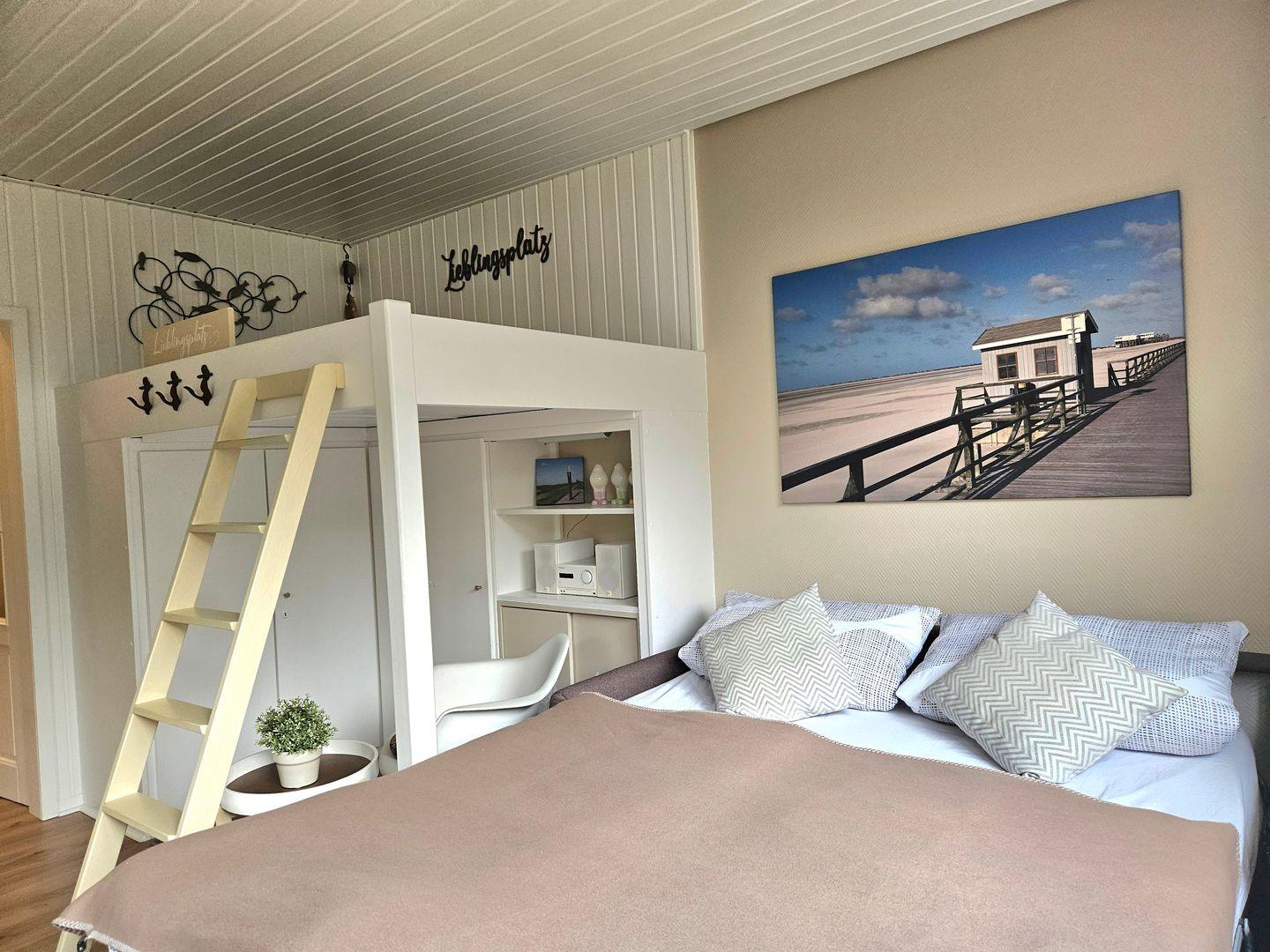 Die Ferienwohnung OrdingNest in St. Peter-Ording bietet modernen Komfort und eine zentrale Lage nahe Promenade und Ortszentrum.
