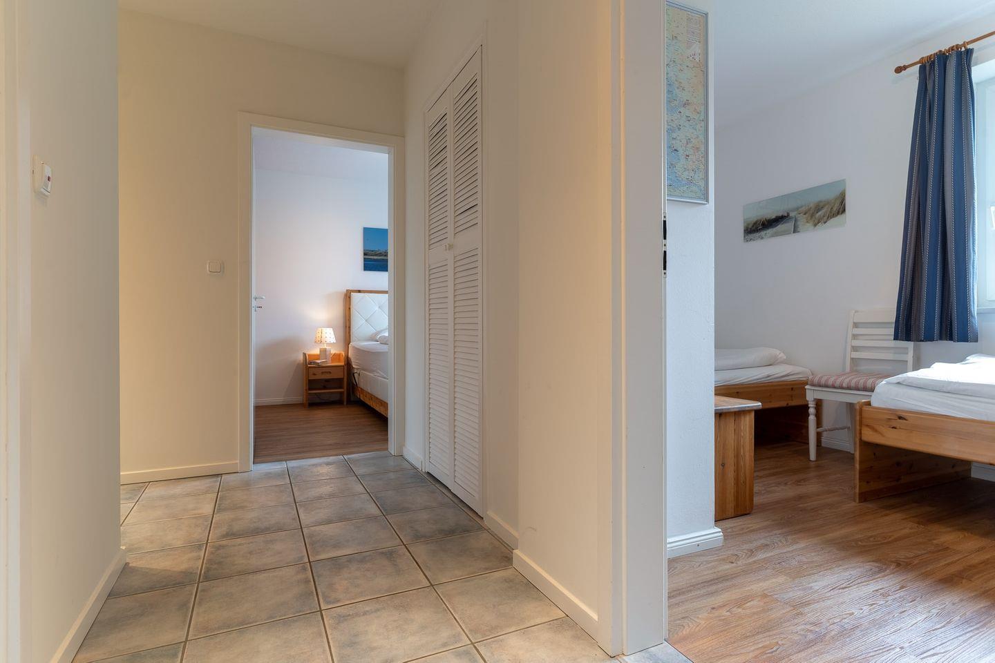 In den beiden Schlafzimmern erwarten Sie erholsame Nächte, dank eines hochwertigen Boxspringbetts und zwei Einzelbetten. Ein gepflegtes Duschbad sowie eine Münzwaschmaschine und ein -trockner stehen Ihnen ebenfalls zur Verfügung.