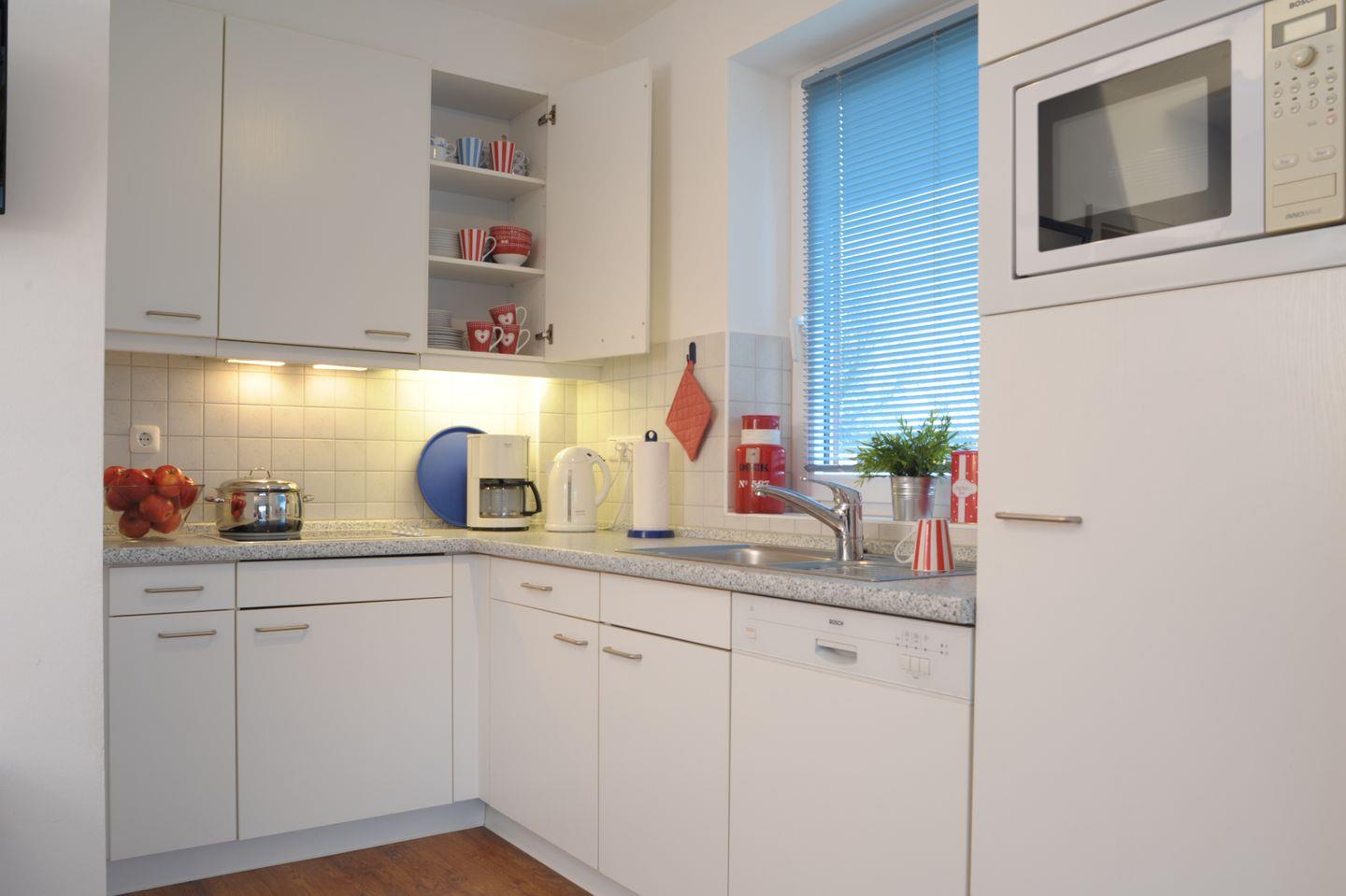 Die offene Küche lädt zum Kochen ein und ist unter anderem mit einem Geschirrspüler, einer Kaffeemaschine und einem Mixer ausgestattet. Ein Duschbad sowie eine Waschmaschine stehen zu Ihrer Verfügung.
