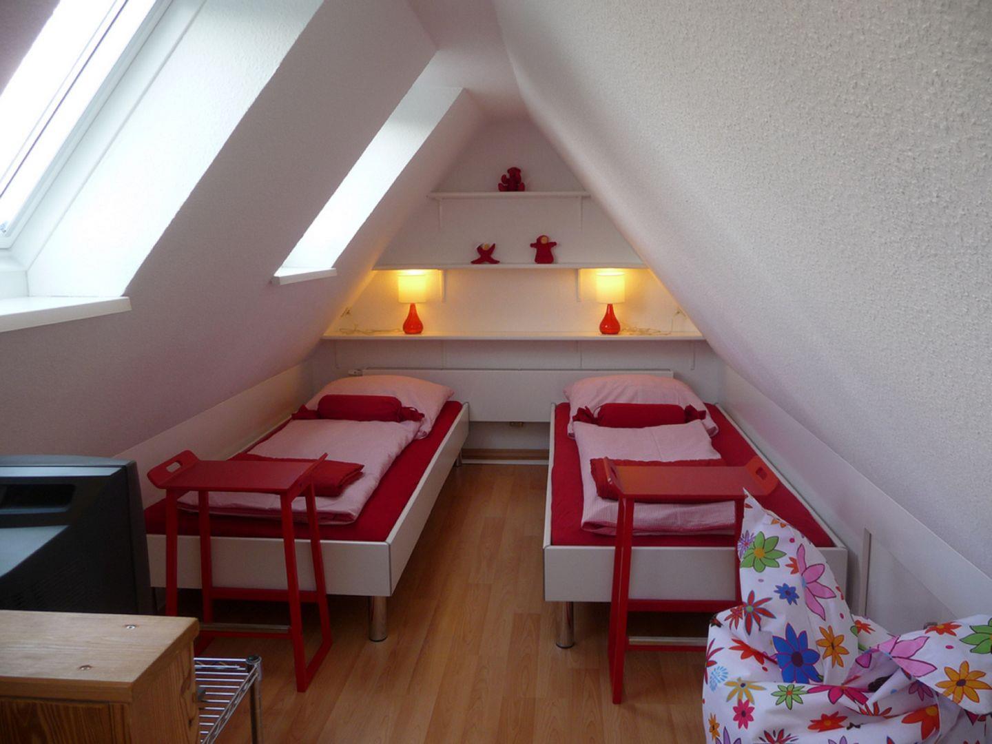 Kleiderschrank.Ausgebauter Spitzboden, 2 Betten (2,10m), Einbauschrank,