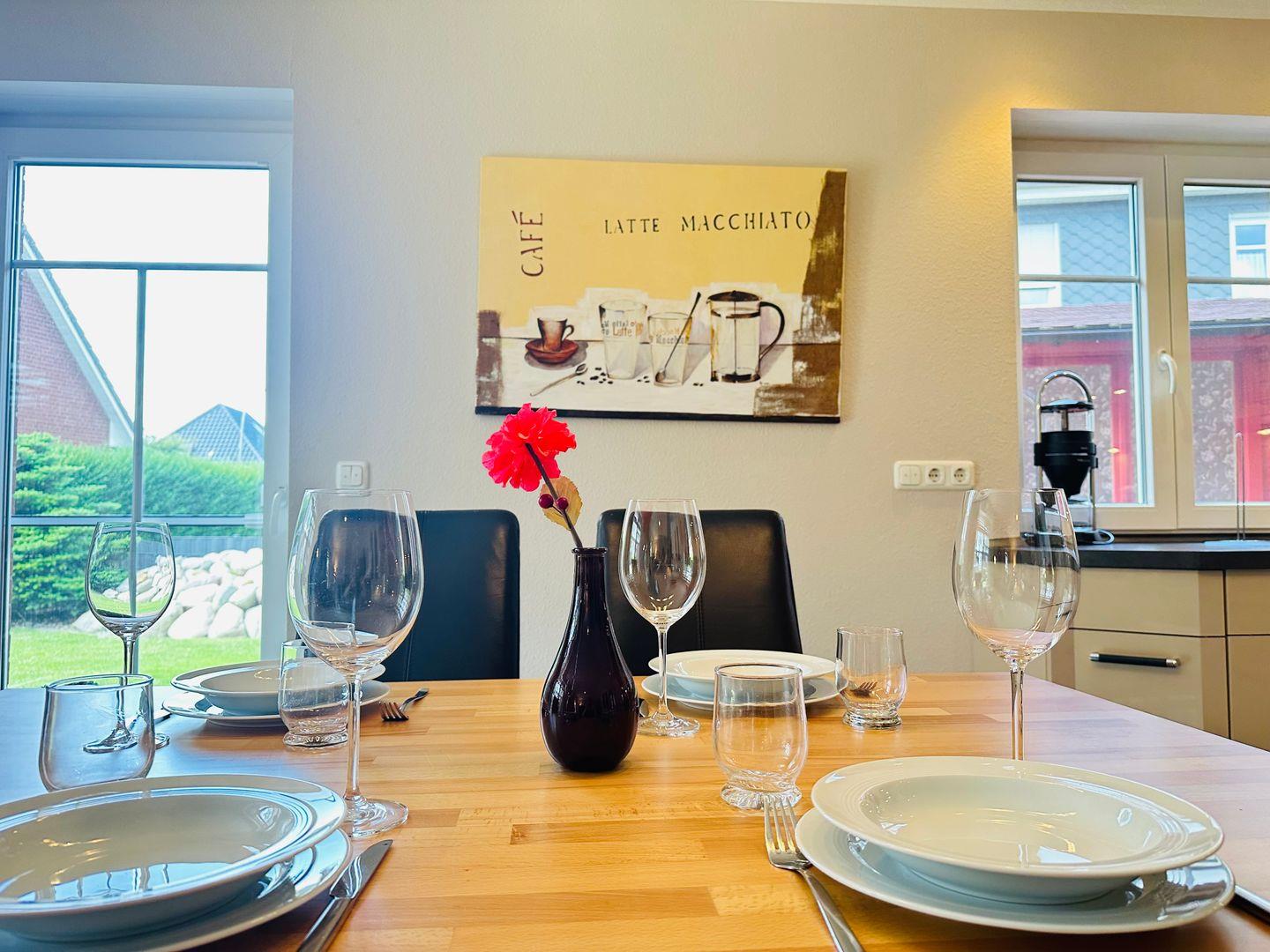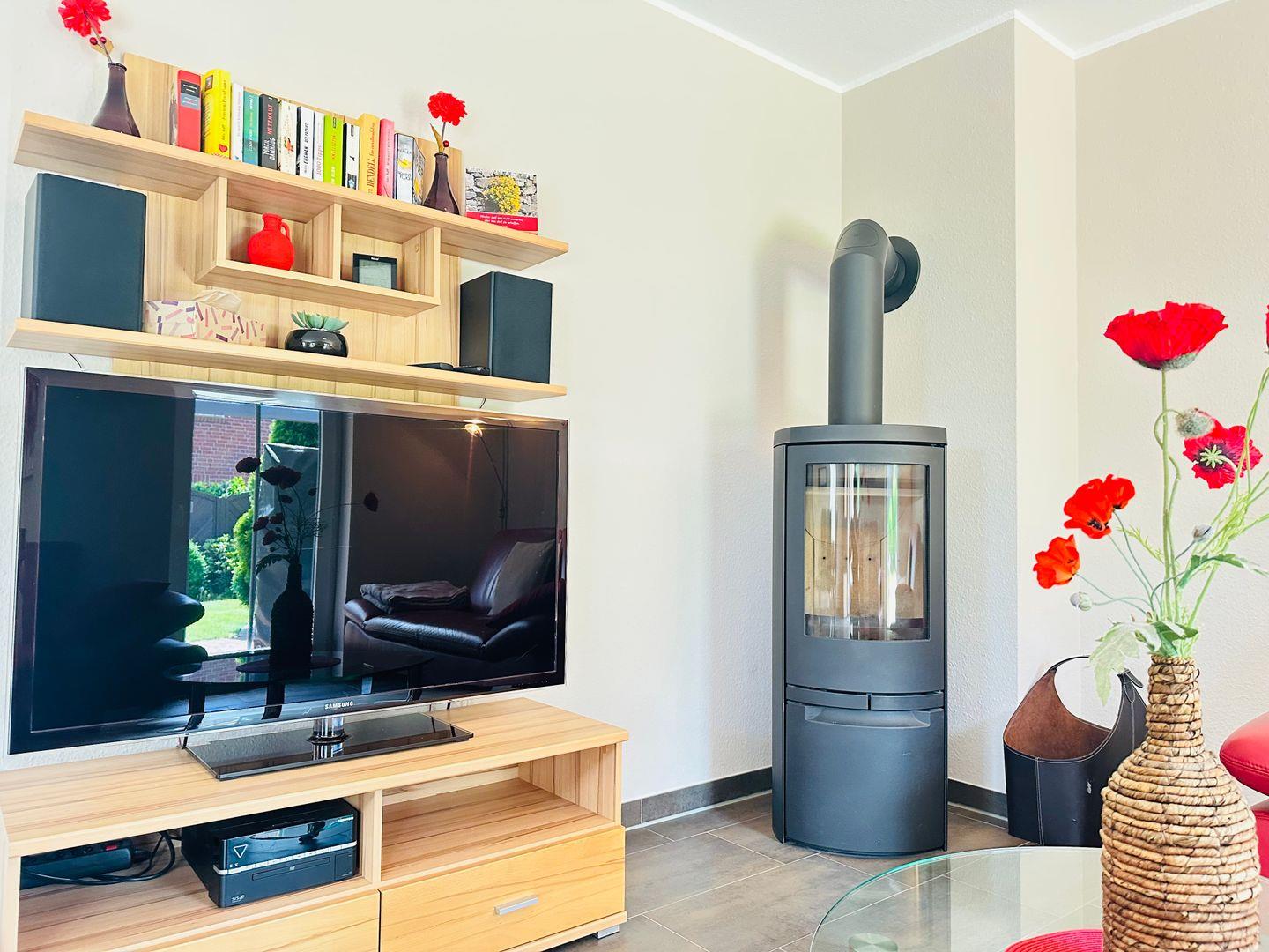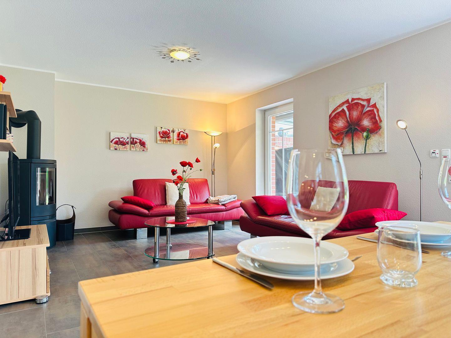 Zentral in St. Peter-Ording Bad liegt die Doppelhaushälfte "Haus bi de Dün". Das Badzentrum mit der Kurpromenade, Einkaufsmöglichkeiten und Cafés/Restaurants erreichen Sie durch den Kurwald in ca. 15 Gehminuten. Im Erdgeschoss erwartet Sie ein heller Wohn- und Essbereich mit einem Kaminofen sowie eine offene moderne Küche mit Backofen, Mikrowelle und Geschirrspüler. Zusätzlich gibt es ein Gästebad mit Dusche und Sauna sowie einen Hauswirtschaftsraum mit Waschmaschine und Trockner. Im ersten Stock befinden sich zwei Schlafzimmer, jeweils mit einem Doppelbett (180x200), und ein Bad mit Dusche und Wanne. Das gesamte Haus verfügt über Fußbodenheizung und Außenrolladen. Zur Ausstattung gehören ein großer LCD-Fernseher, Internet, Stereoanlage etc. Das Haus bietet ein großes Gartengrundstück mit einer glasüberdachten Terrasse und Gartenmöbeln. Ein PKW-Stellplatz befindet sich vor dem Haus. Haustiere sind nicht erlaubt, und es handelt sich um ein Nichtraucherhaus. Das Laden von elektrisch betriebenen PKWs oder Hybridfahrzeugen sowie das Einstellen von Wohnwagen und Wohnmobilen mit Anschluss an den Hausstrom ist ohne ausdrückliche Absprache mit dem Eigentümer nicht zulässig.