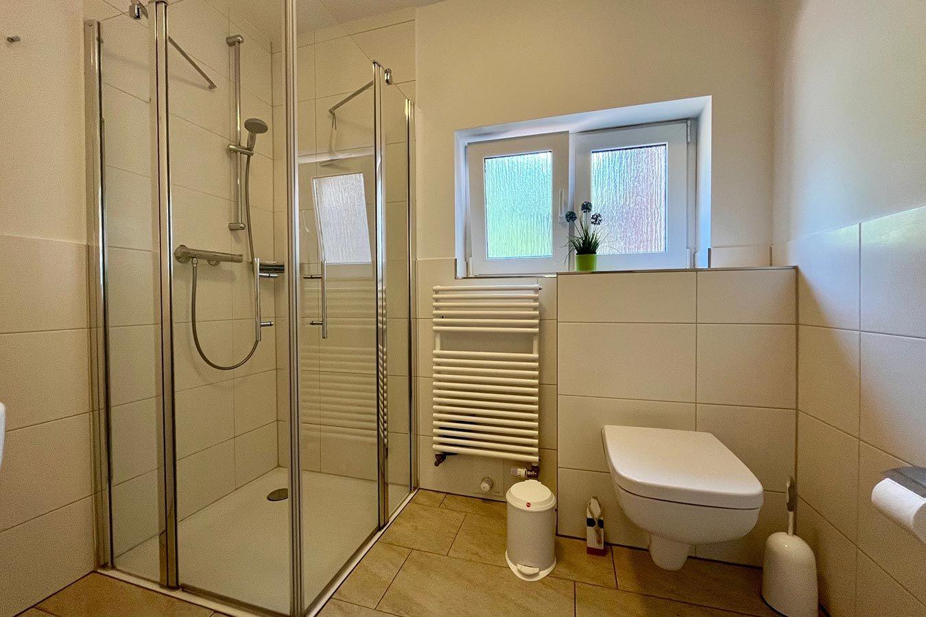 Das Haus mit ca. 90 m2 Wohnfläche hat auf beiden Etagen ein modernes Bad mit Dusche/WC.