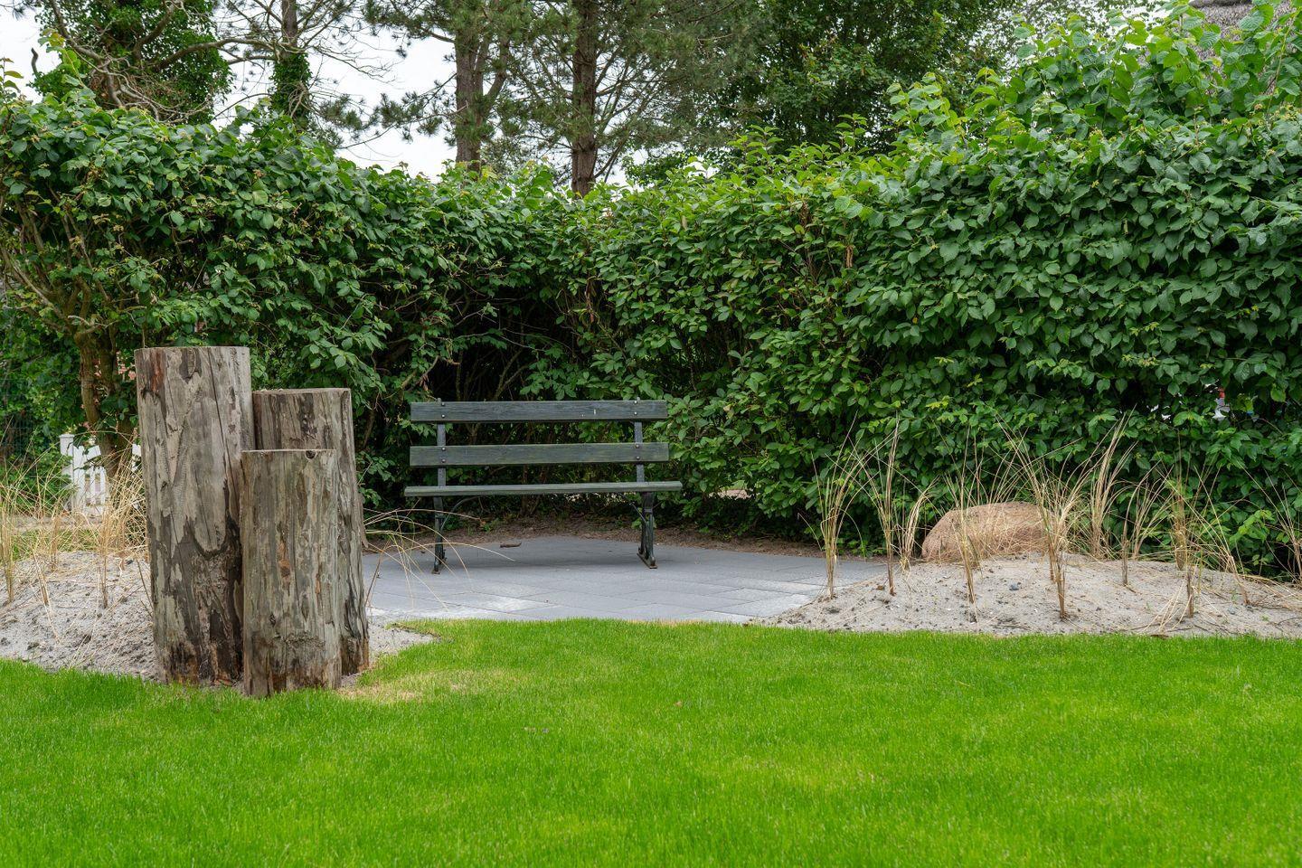 Auf der Terrasse im Garten können Sie Ihr Frühstück im Strandkorb genießen. Direkt nebenan befindet sich das Ferienhaus Immenseeglück Nr. 2.