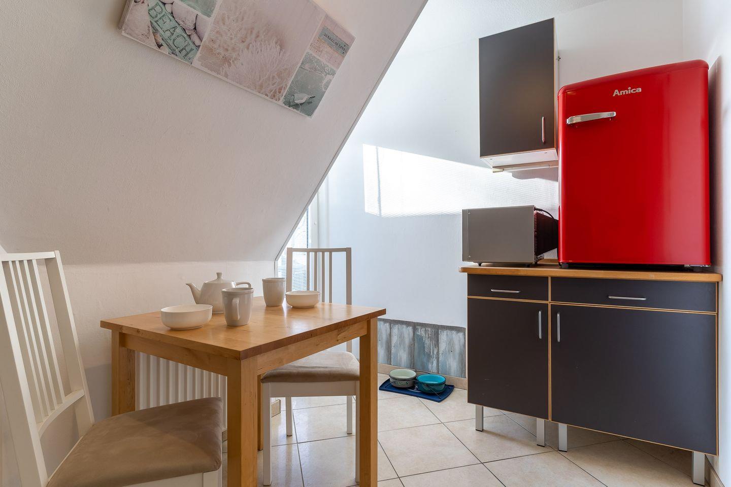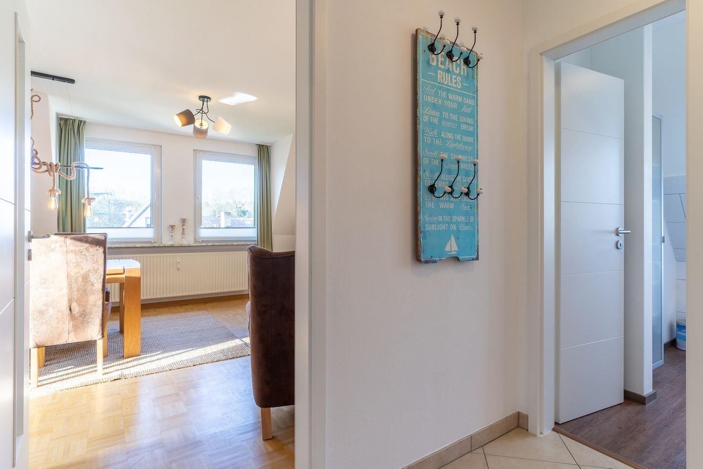 Geräumige Ferienwohnung Austernfischer im Haus Sonnenwinkel nahe Böhler Leuchtturm mit Balkon und WLAN.