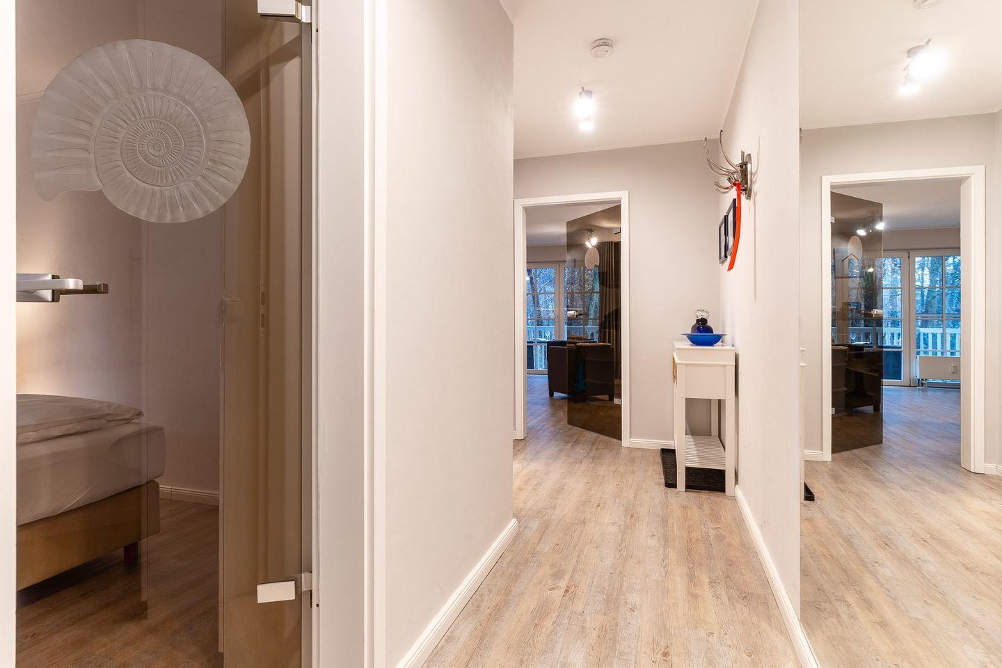 Die Ferienwohnung "Sanddorn" in der Friesenresidenz bietet eine zentrale Lage im Ortsteil Bad und liegt direkt am Kurwald.
