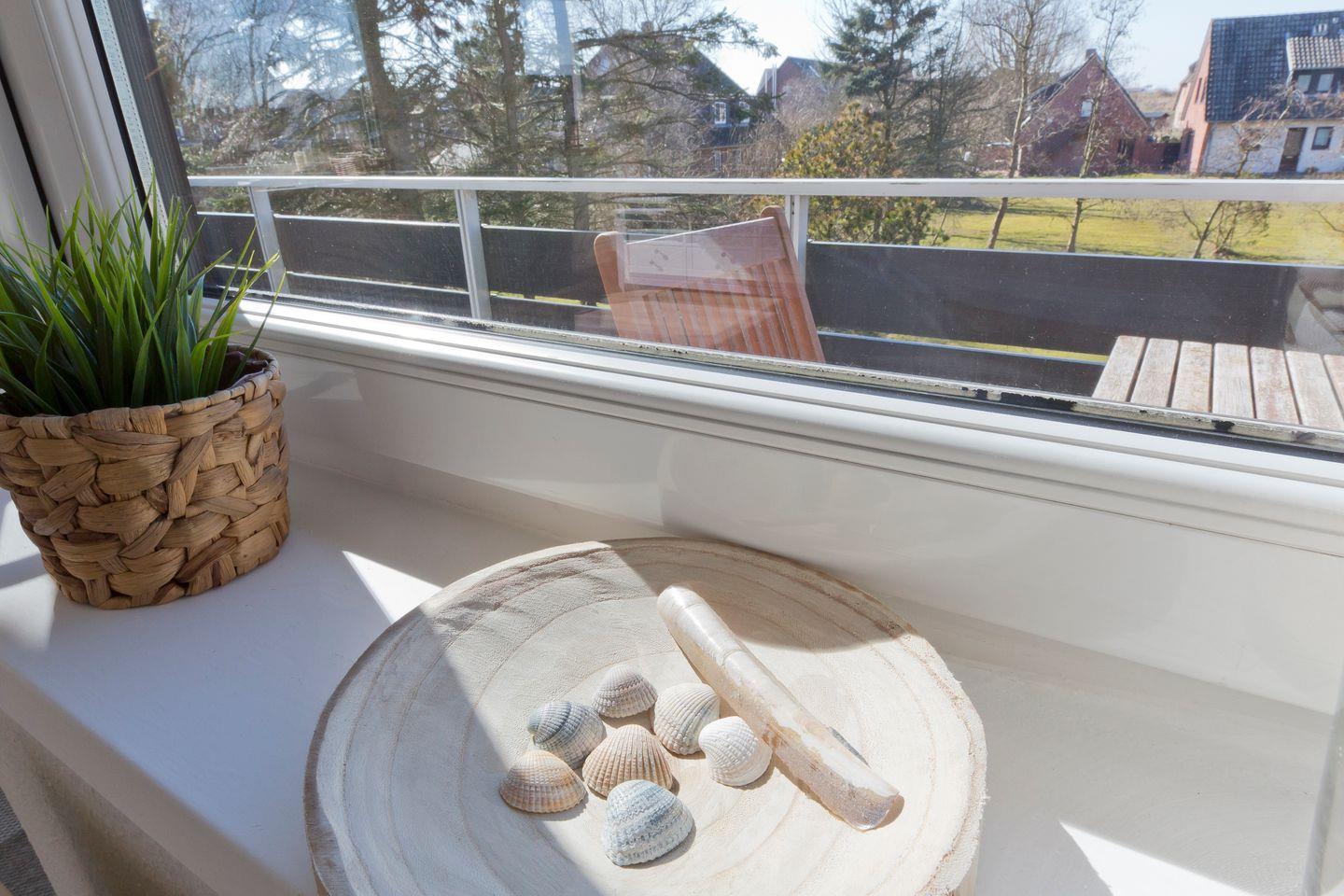 Vom Wohnbereich gelangen Sie auf den Balkon, der mit Gartenmöbeln ausgestattet ist. Haustiere sind in dieser Ferienwohnung nicht erwünscht.