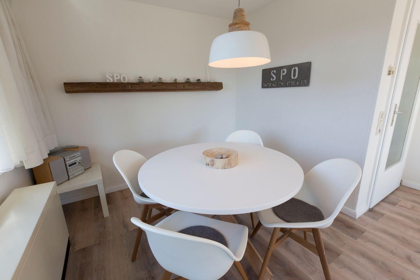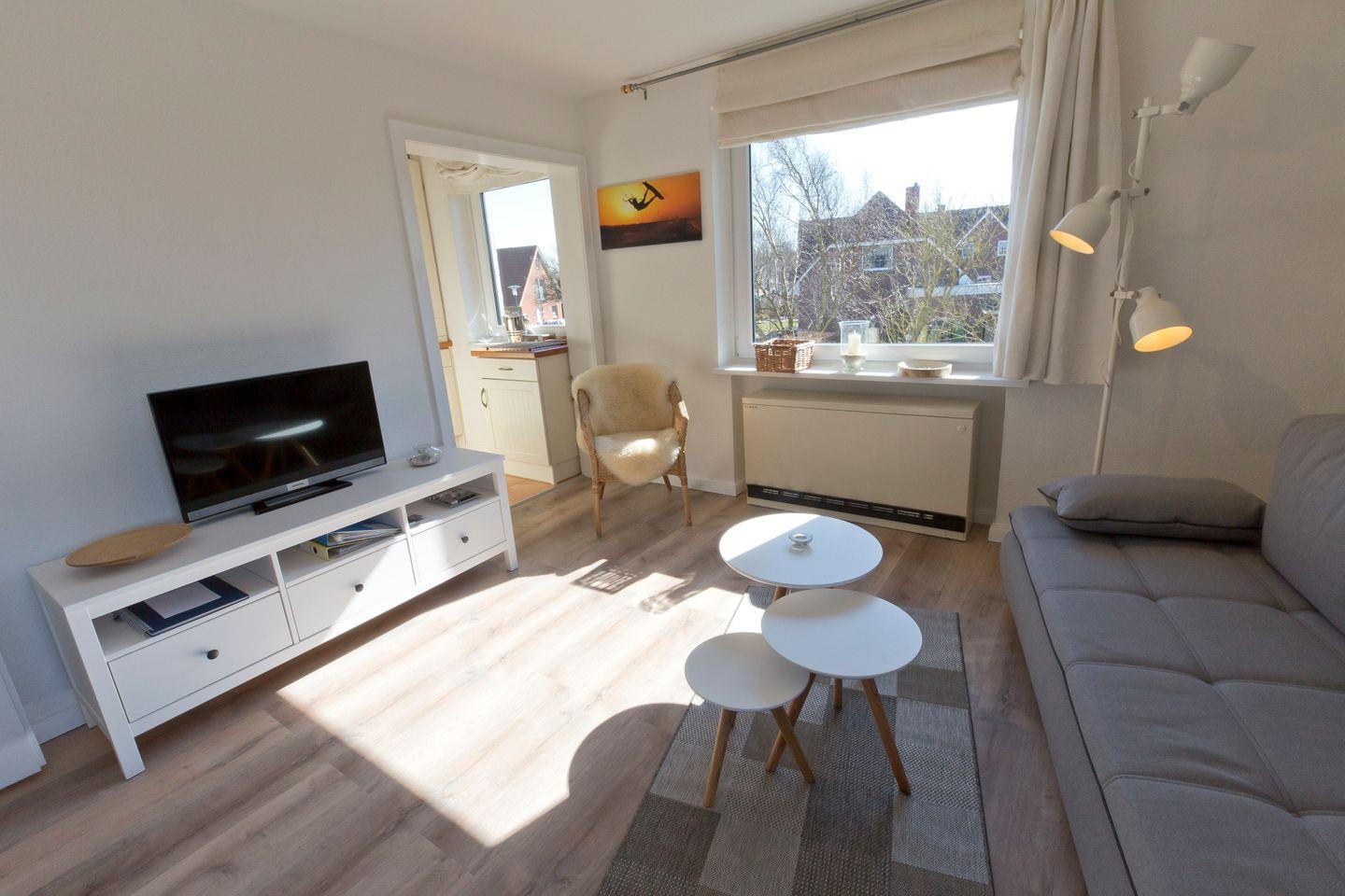 Die ca. 47 m² große Wohnung befindet sich im 1. Obergeschoss und ist maritim im dänischen Stil eingerichtet.