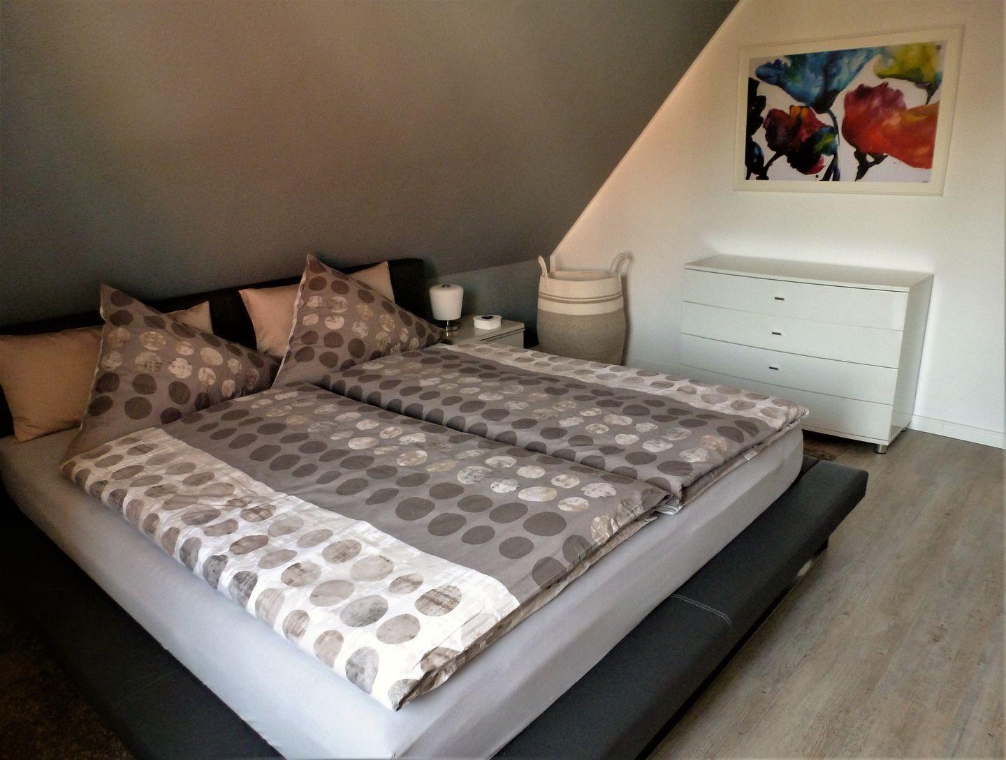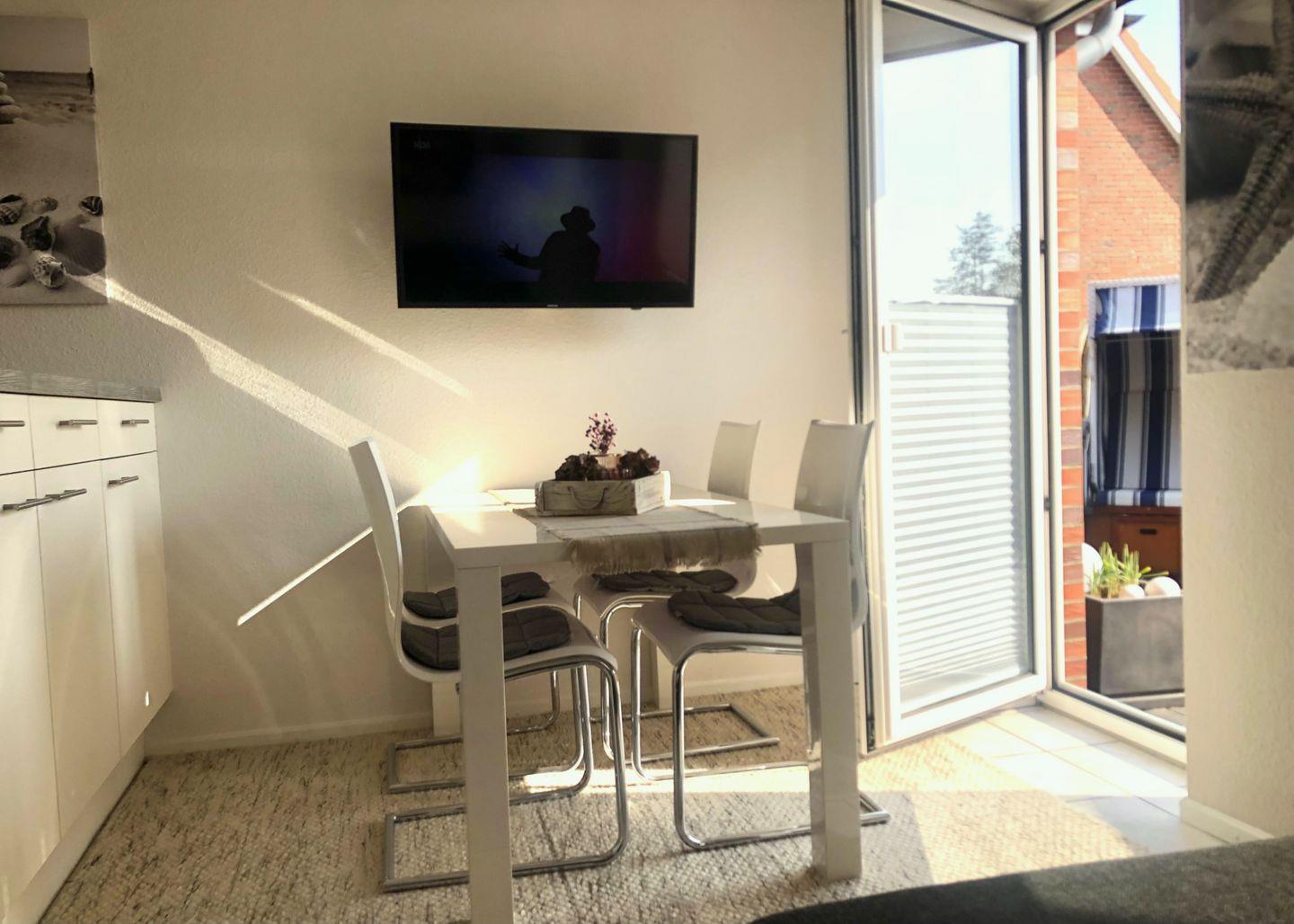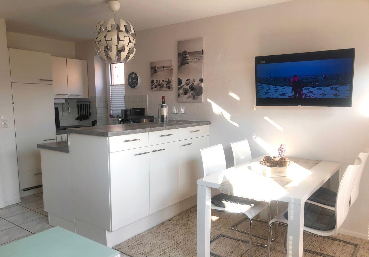 Reihenendhaus für 4 Personen im Ortsteil Böhl, 200m zum Deich und 900m zum Böhler Strand. Ca. 55 qm Wohnfläche: Flur, offener Wohn- Essbereich mit Küche, 1 Duschbad mit WC, Abstellraum. 1. OG: 1 Schlafzimmer mit Doppelbett, 1 Schlafzimmer mit Doppelbett (140x200), Terrasse. Kleiner Garten mit Süd/West-Terrasse, exklusiv für Gäste. Waschmaschine/Trockner, WLAN, DVD-Player. Stromversorgung des TV über Schalter unter dem TV. Das Laden von elektrisch betriebenen PKW's oder Hybrid Fahrzeugen sowie das Einstellen von Wohnwagen und Wohnmobilien mit Anschluss an den Hausstrom ist nicht zulässig.