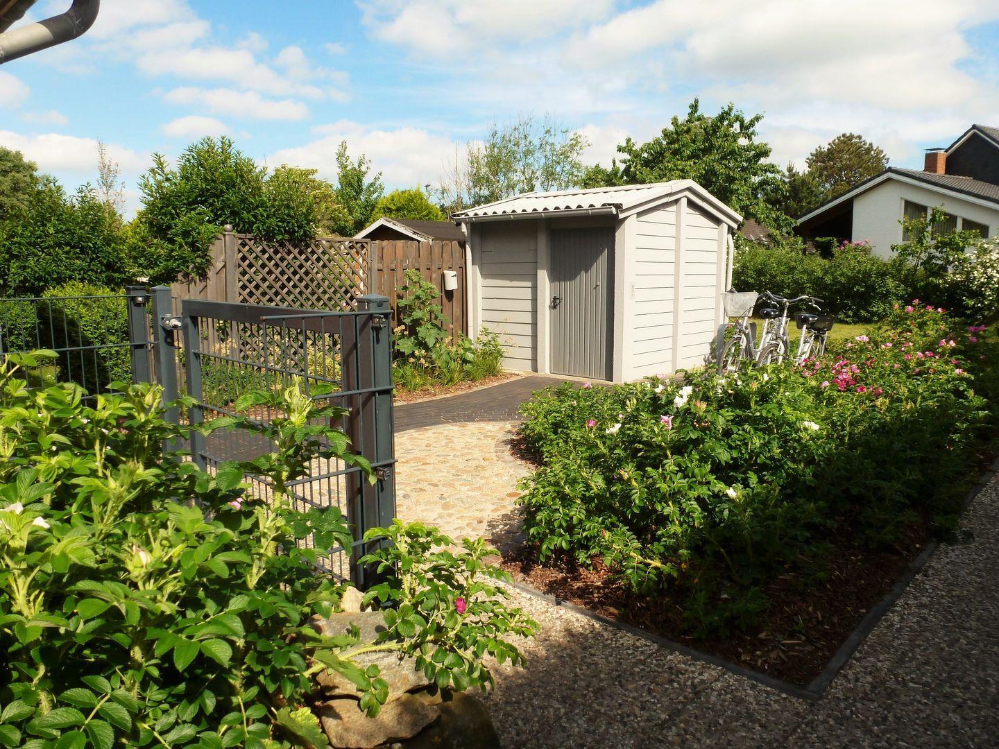 Ein PKW-Stellplatz ist unmittelbar am Haus. Fahrräder werden im abschließbaren Gartenhaus sicher untergebracht.