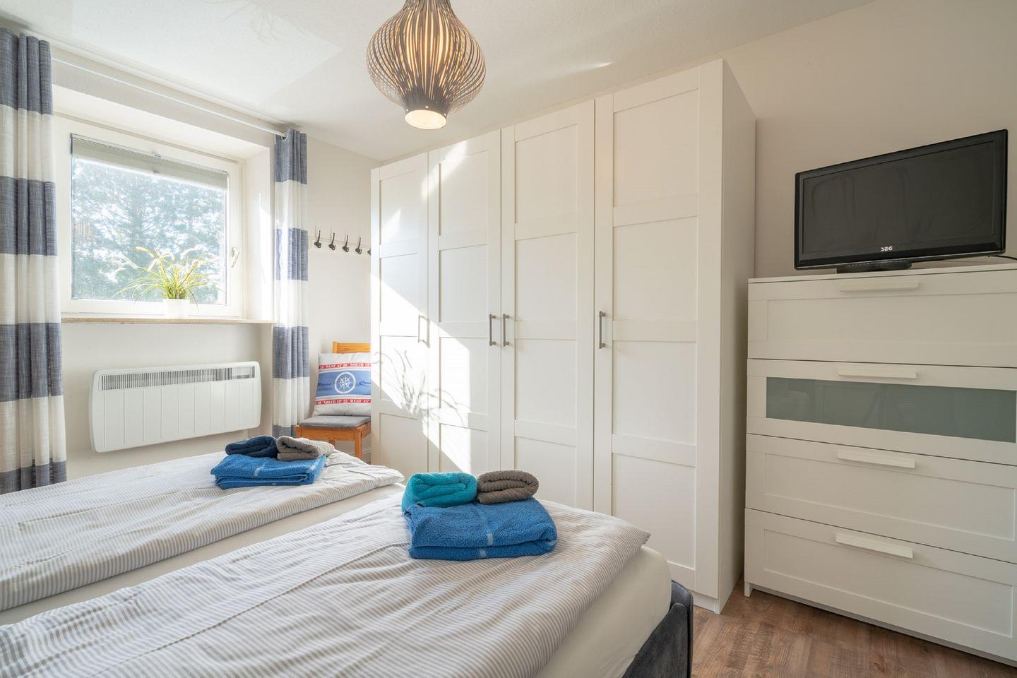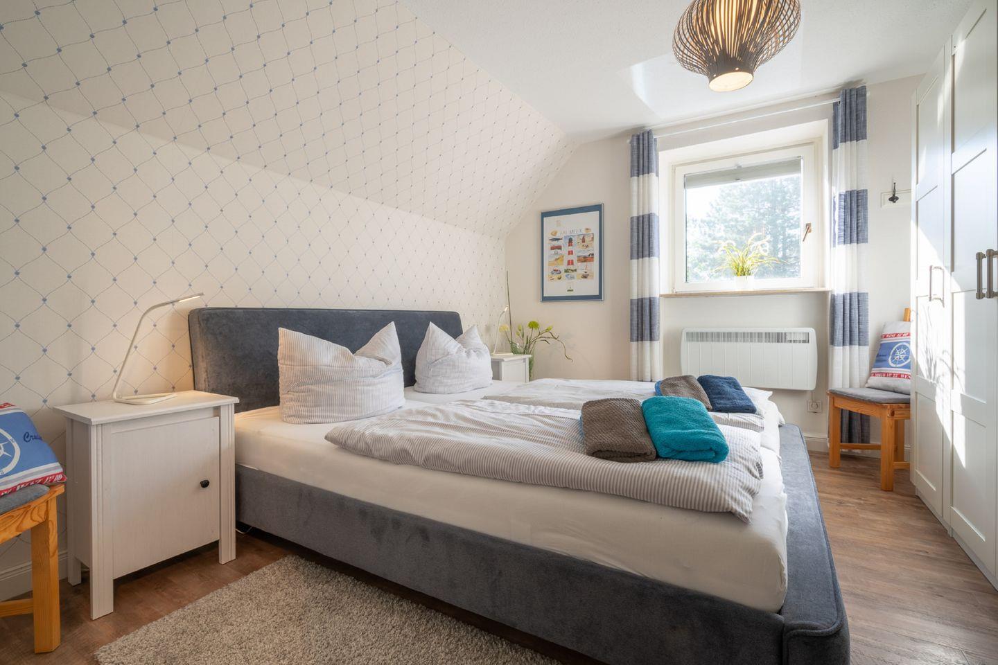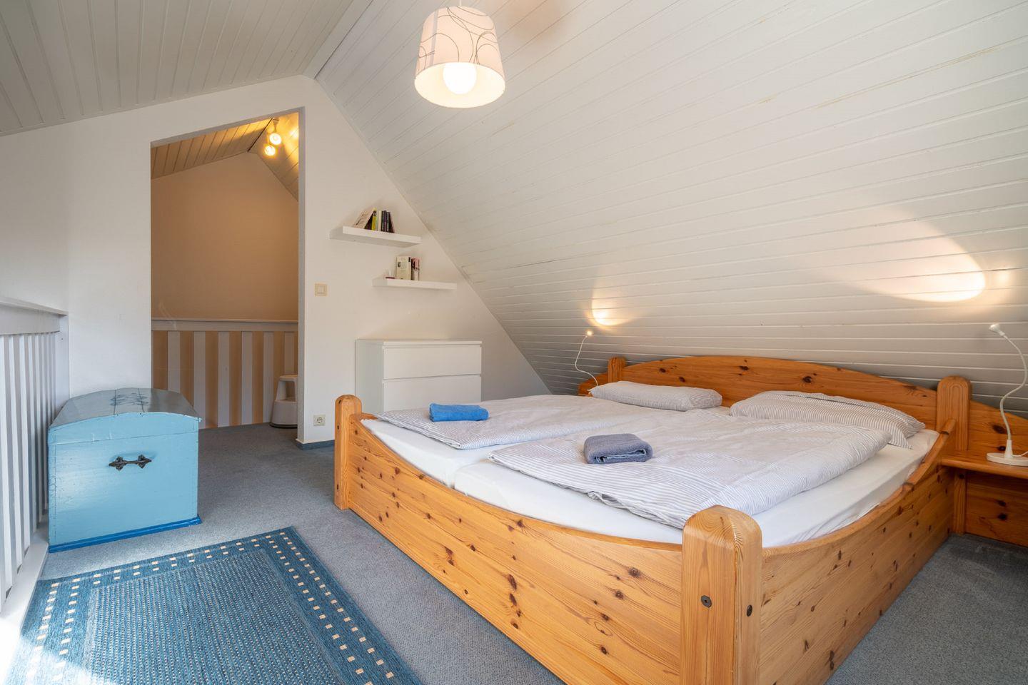 Die Ferienwohnung bietet zwei Schlafzimmer, wobei sich eines auf der offenen Schlafempore befindet. Ein Duschbad sowie ein schöner Balkon gehören ebenfalls zur Ausstattung. Eine Waschmaschine steht den Gästen zur Verfügung.
