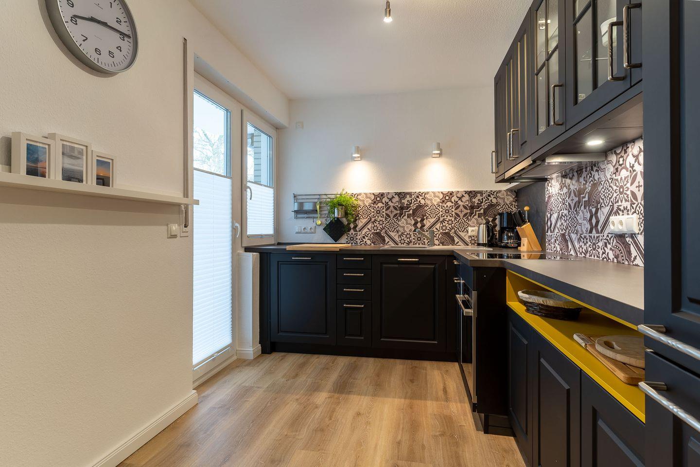 Der großzügige Wohn- und Essbereich ist dank der Fensterfront und der Zugangstüren zur Terrasse lichtdurchflutet. Genießen Sie gemütliche TV-Abende in der Sitzecke oder speisen Sie am großen Esstisch mit Familie und Freunden. WLAN steht zur Verfügung.