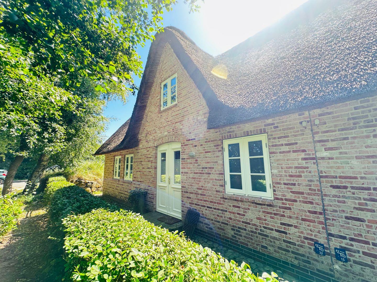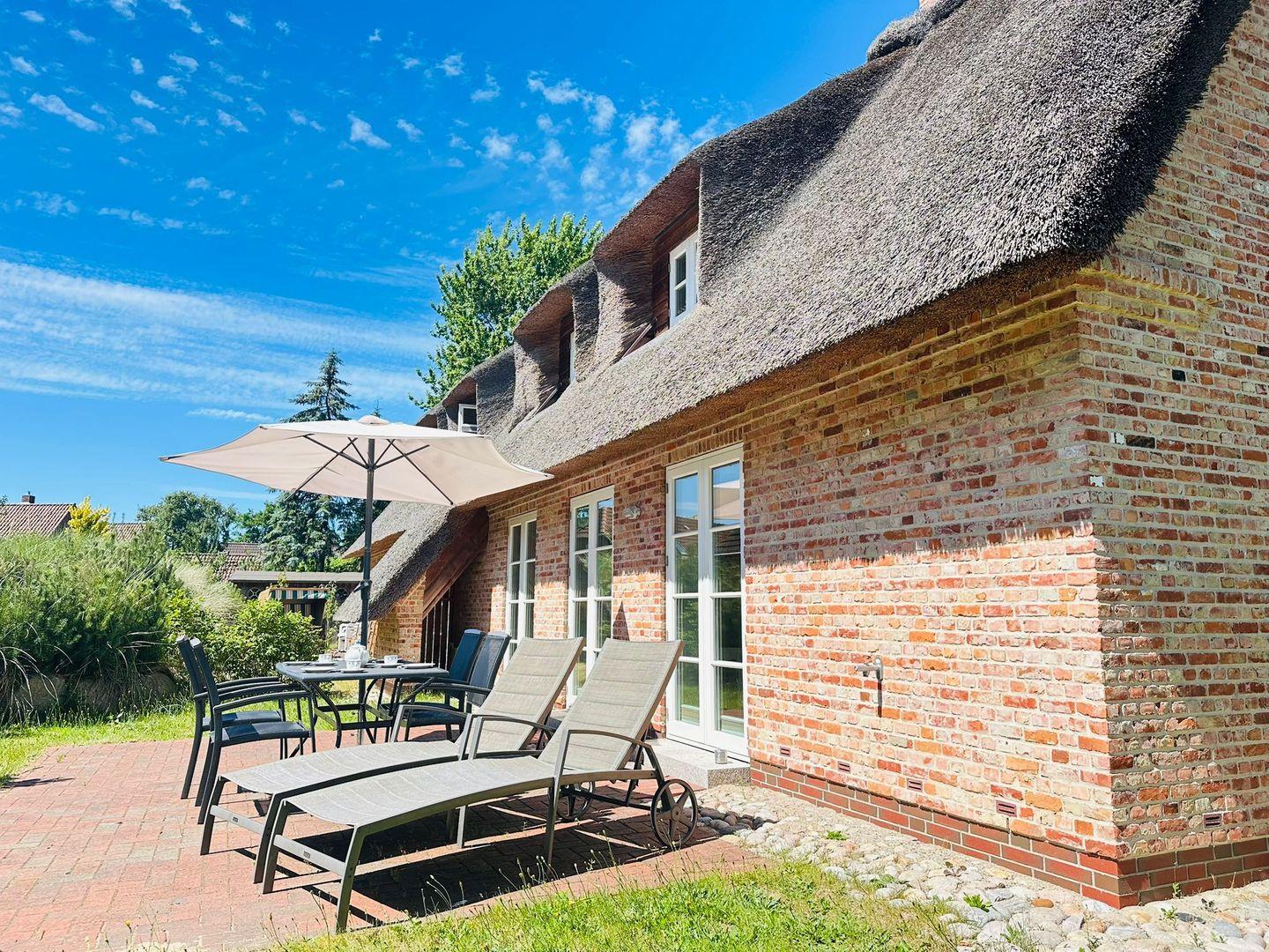Modernes Doppelhaus unter Reet in St. Peter-Ording, ideal für Familien mit Terrasse, Garten und hochwertiger Ausstattung.