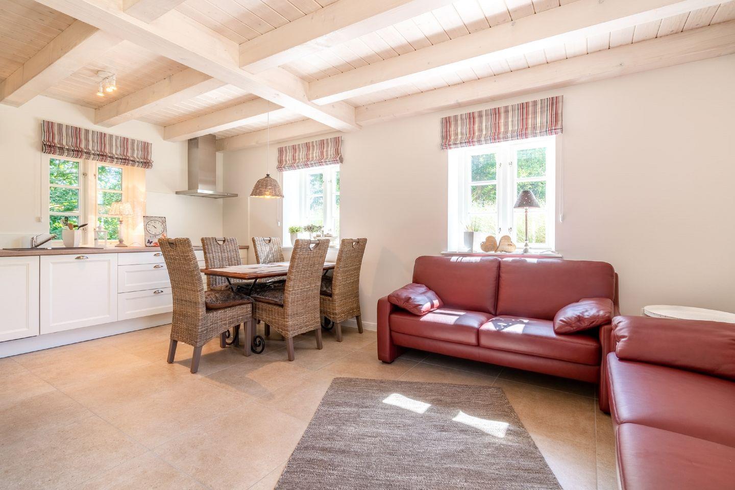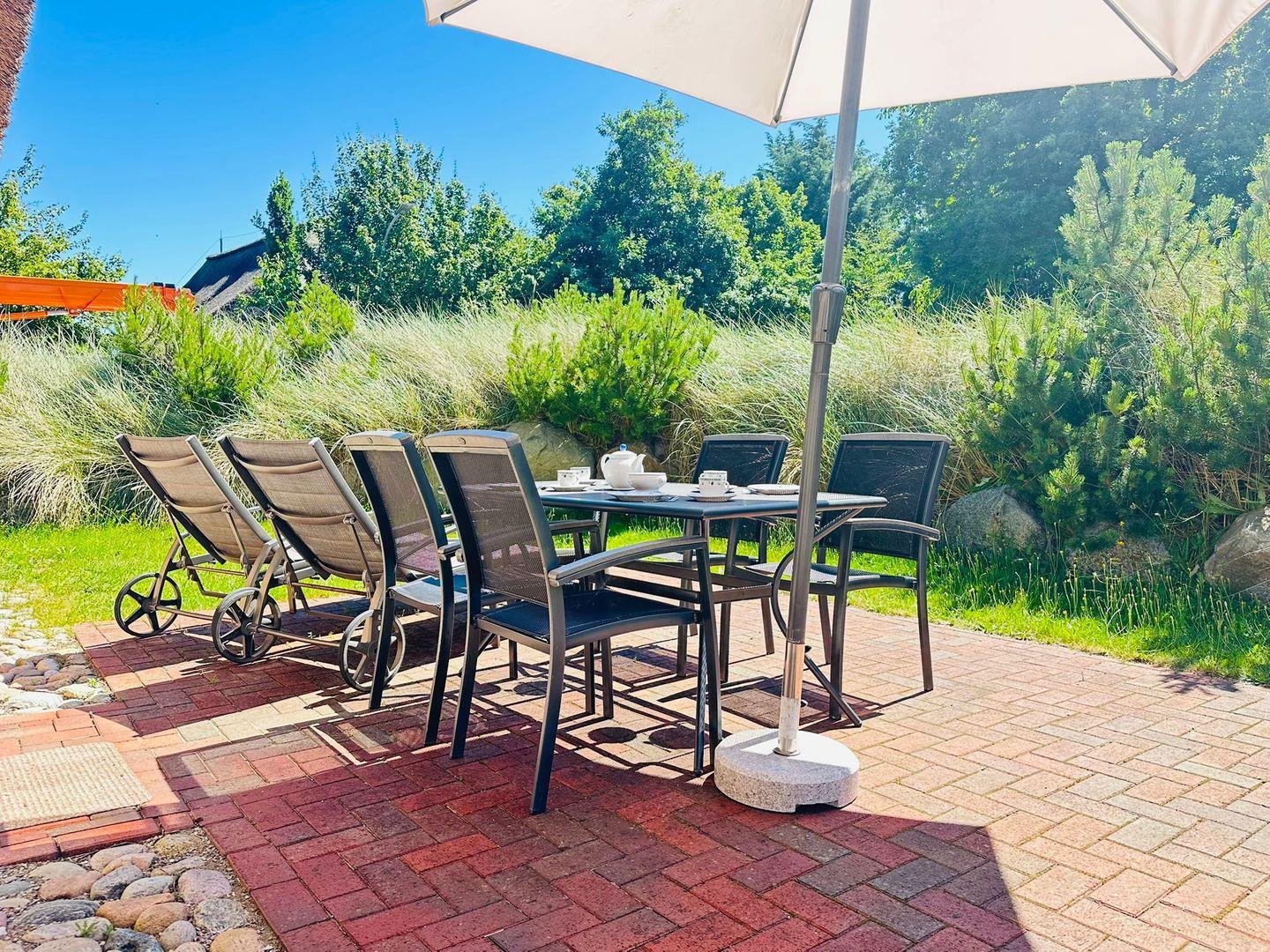 Modernes Doppelhaus unter Reet im Ortsteil Dorf, ca. 85 qm auf 2 Etagen. Erdgeschoss: Wohnraum mit Essecke und offener Küche, 1 Schlafraum (franz. Bett 1,60 x 2,00 m), Duschbad/WC. Obergeschoss: 2 Schlafräume (1 Doppelbett, 1 Einzelbett), Duschbad/WC, Handtuchheizung, Föhn in jedem Bad. Ausstattung: Kleine Bibliothek, Flachbild-TV, WLAN, Geschirrspüler, Kühlschrank mit Gefrierfach, Ceranfeld, Mikrowelle, Waffeleisen, SodaStream, Herd mit Backofen. Hund erlaubt, Nichtraucher. Terrasse zur Alleinnutzung mit Gartenmöbeln, PKW-Stellplatz, abschließbarer Fahrradschuppen, faltbarer Strandbuggy mit Zubehör, Waschmaschine. Das Laden von elektrisch betriebenen PKWs oder Hybridfahrzeugen sowie das Einstellen von Wohnwagen und Wohnmobilen mit Anschluss an den Hausstrom ist nicht zulässig.