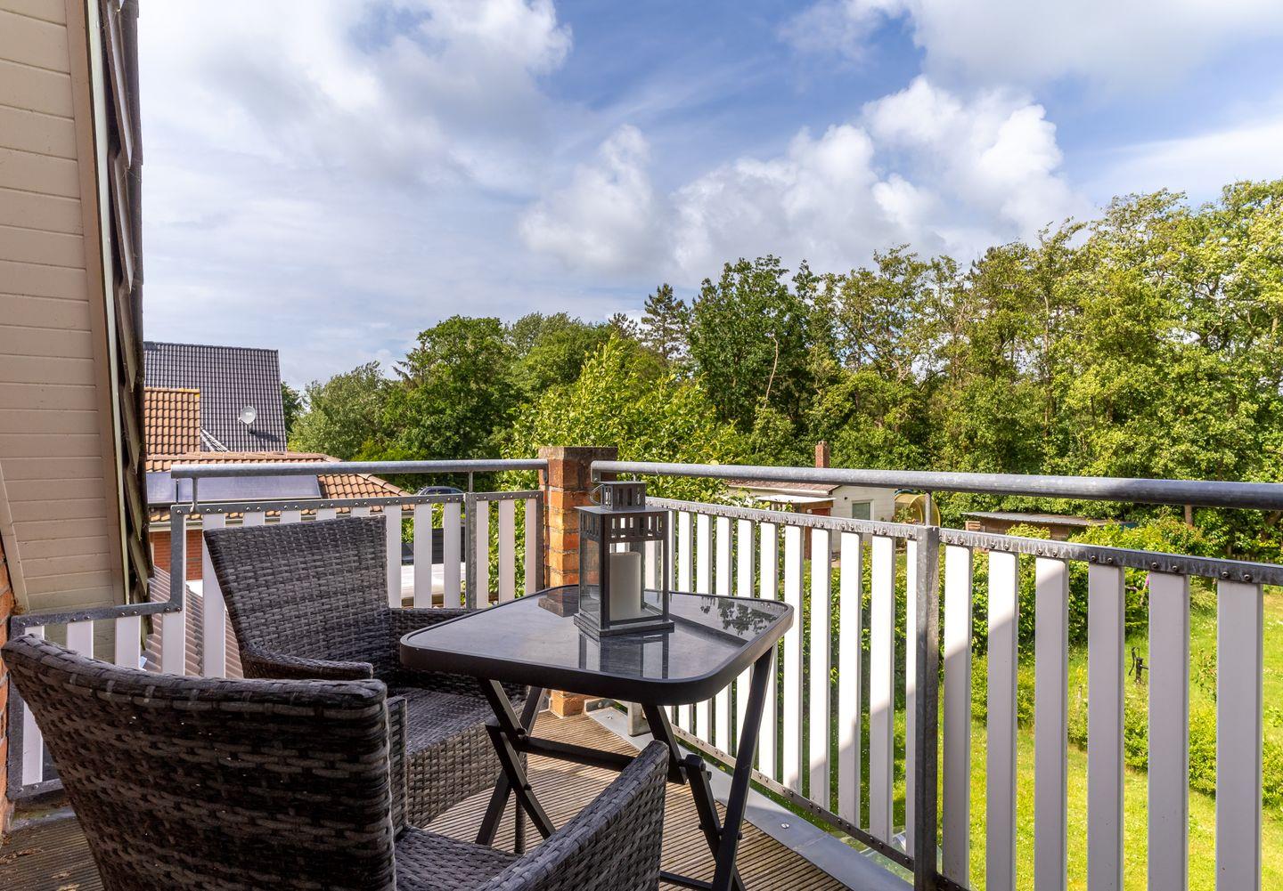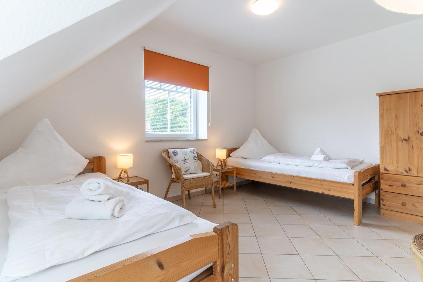 Große Doppelhaushälfte im Ortsteil Dorf, 130 m² über 2 Etagen. Ausgestattet u.a. mit Sitzecke, Flachbild-TV (SAT-Anlage, CD-Player), Küche (Geschirrspüler, Backofen), möblierte Südterrasse, Gäste-WC mit Dusche, Hauswirtschaftsraum (Waschmaschine). Schlafraum mit Flachbild-TV und Doppelbett (1,80 x 2,00 m), Schlafraum mit zwei Einzelbetten (je 90 x 2,00 m), Schlafraum mit einem Tandembett (1,60 x 2,00 m). Modernes Duschbad mit WC. Holzgrill, Kinderhochstuhl, Reisebett. Hunde auf Anfrage. Kostenloser WLAN-Zugang, PKW-Stellplatz am Haus. Nichtraucherhaus. Das Laden von elektrisch betriebenen PKWs oder Hybridfahrzeugen sowie das Einstellen von Wohnwagen und Wohnmobilen mit Anschluss an den Hausstrom ist nicht zulässig.