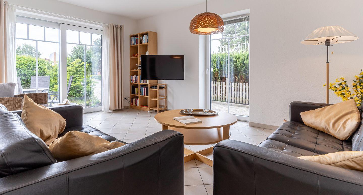 Ferienhaus Sommerbrise - Dieses Haus bietet auf einer Fläche von 130 qm mit einer ruhigen Lage am Heideweg viel Platz für Erholung. Es verfügt über ein großzügiges Wohnzimmer mit einer davorliegenden Südterrasse.