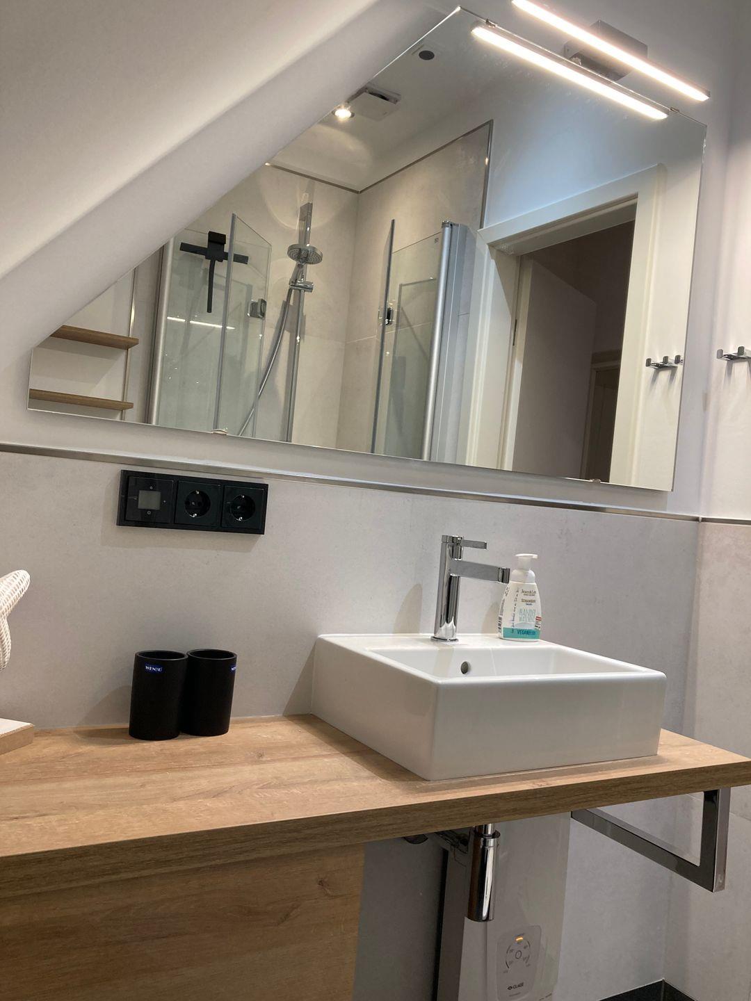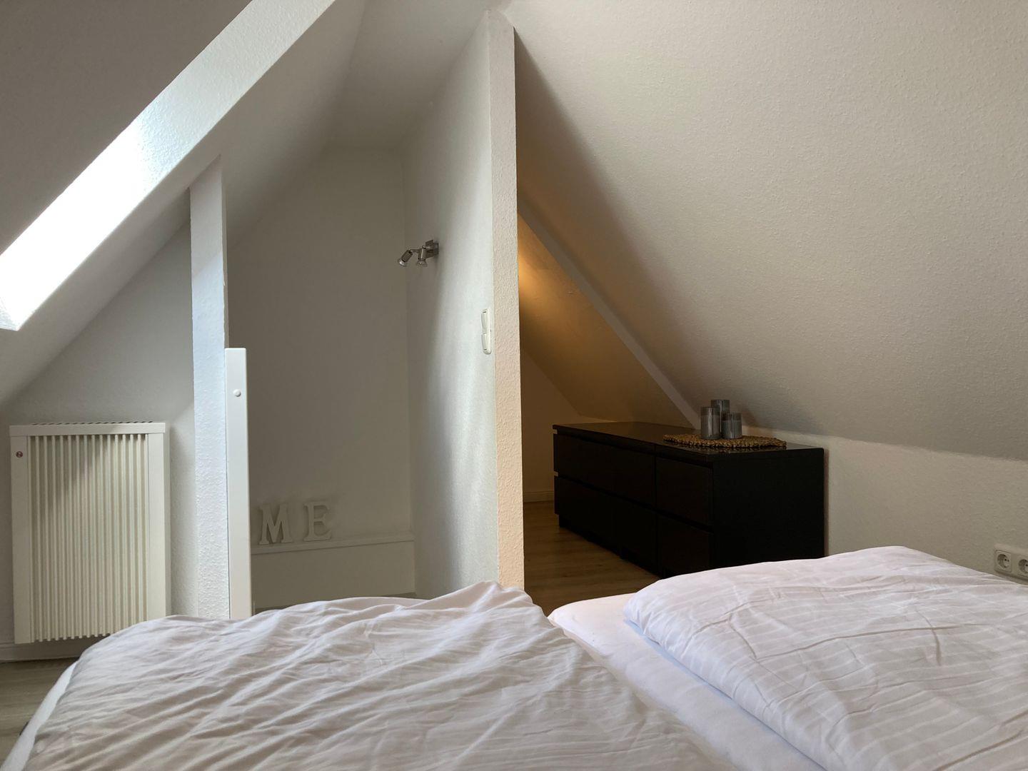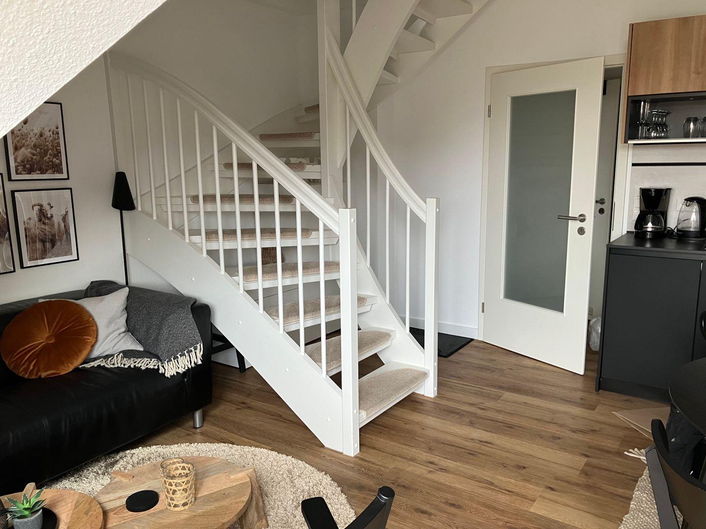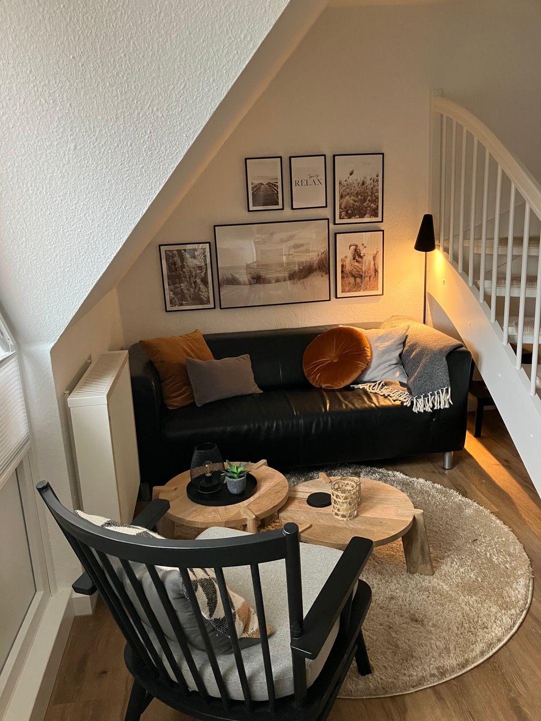 Die Wohnung erstreckt sich über zwei Stockwerke. Die moderne Einrichtung, mit Liebe zum Detail, sorgt für eine gemütliche Atmosphäre.