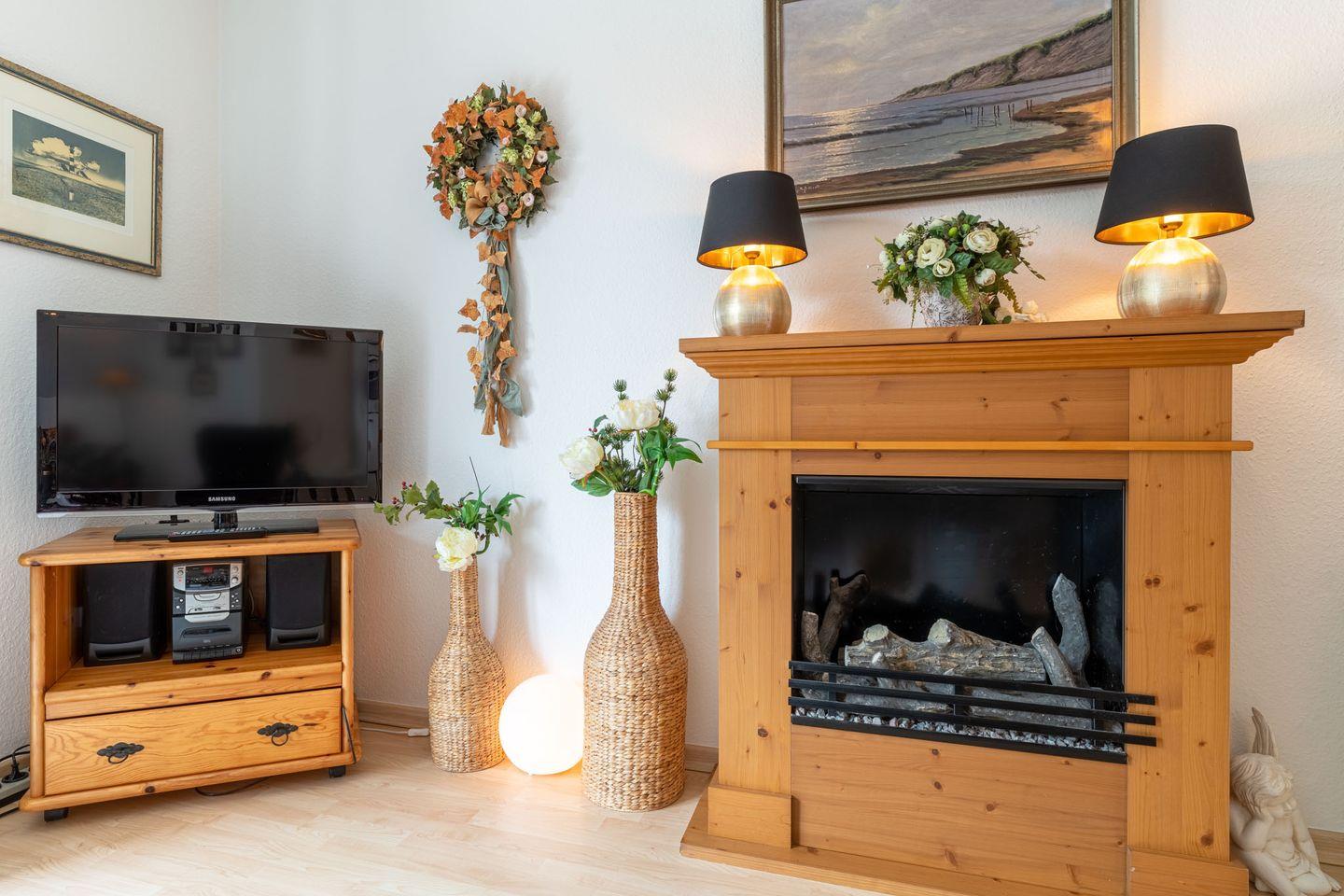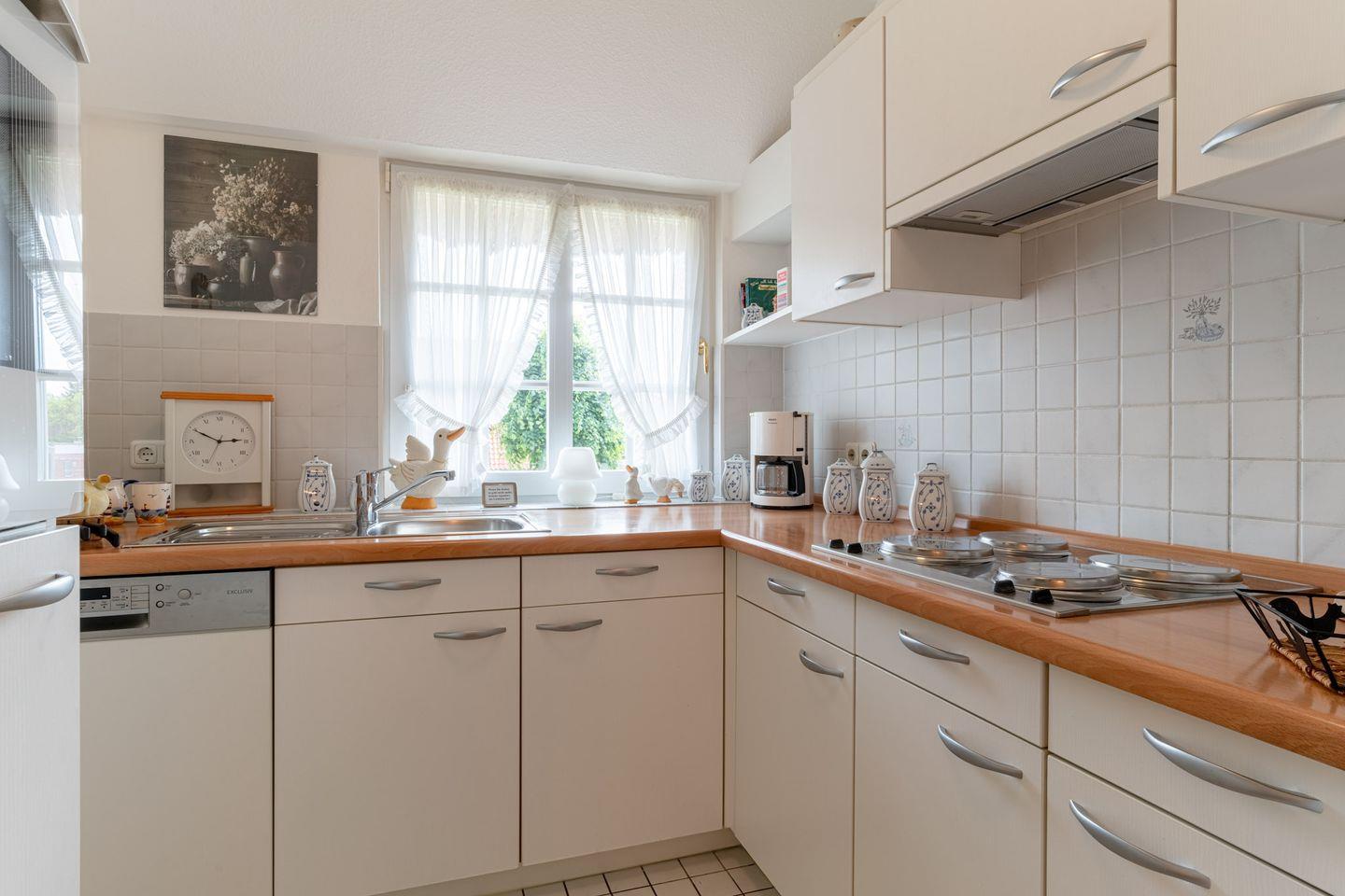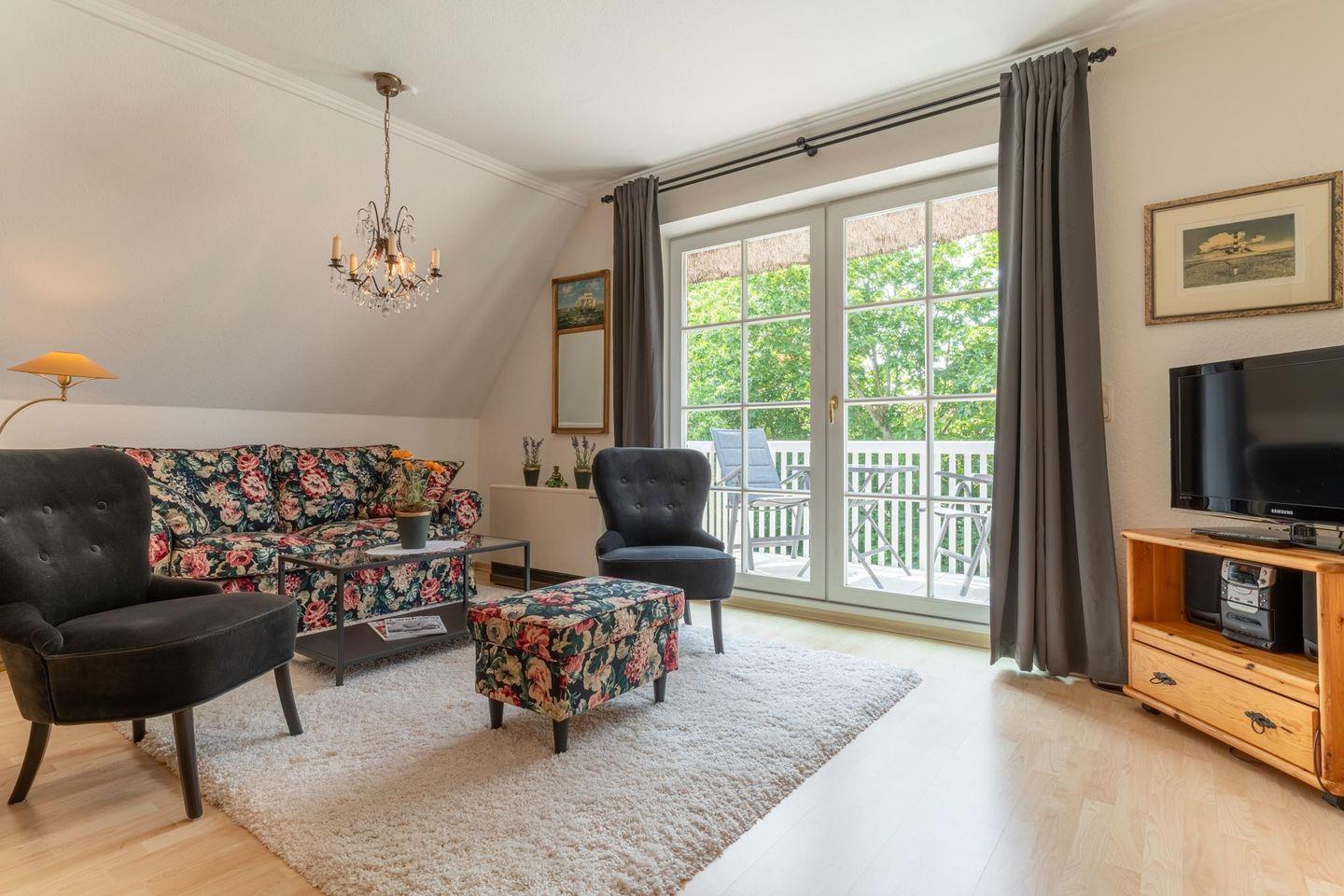 Ferienwohnung Anna, Whg. 8 - Eine charmante Wohnung in einem Reetdachhaus im Ortsteil Dorf. In wenigen Gehminuten erreichen Sie das Dorfzentrum mit Restaurants und Einkaufsmöglichkeiten. Zum Seedeich mit Strandübergang sind es etwa 15 Gehminuten.