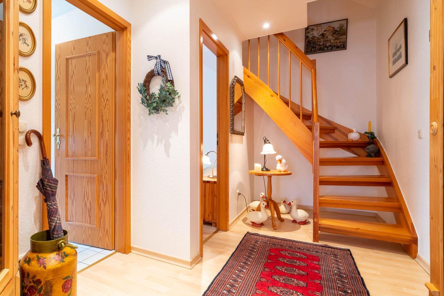 Das ca. 75 qm große Feriendomizil liegt im ersten Obergeschoss und erstreckt sich über 2 Etagen. Die Wohnung ist mit Liebe zum Detail eingerichtet.