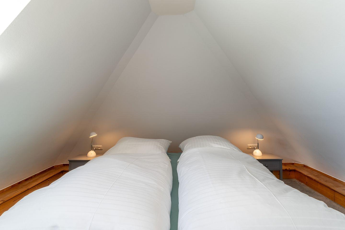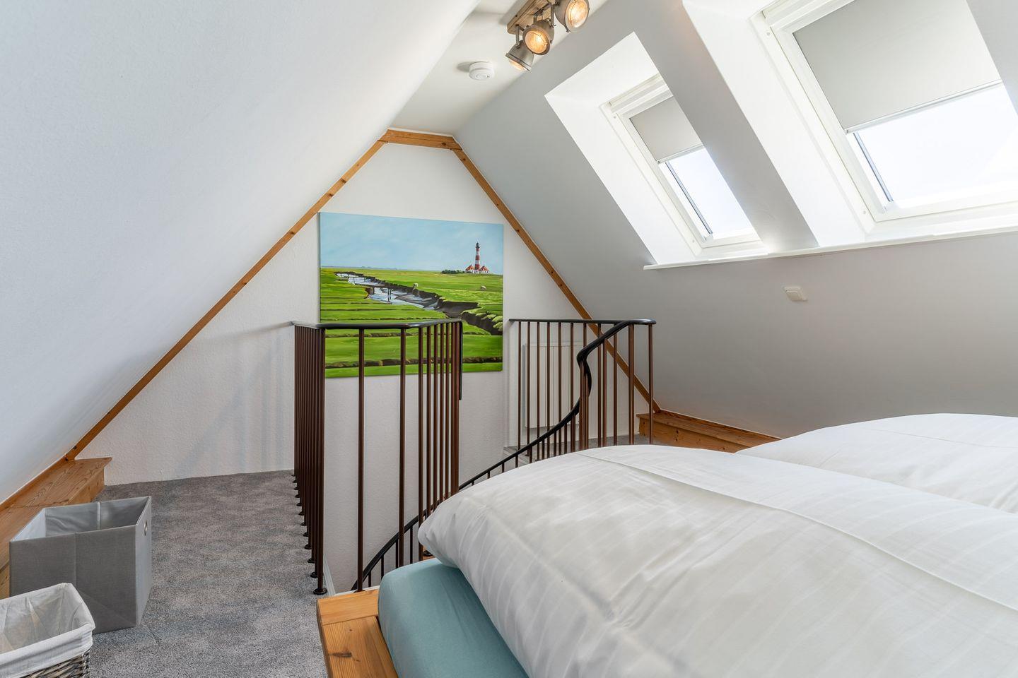 Moderne Maisonette-Ferienwohnung „Dat lüttje Nest“ in St. Peter-Ording mit gemütlichem Wohnbereich und Dachbodenschlafzimmer.