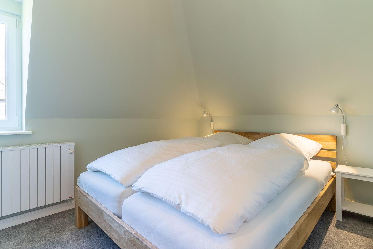 Ein Schlafzimmer mit einem französischen Bett (160 x 200 m) und Kleiderschrank sowie ein Bad mit Dusche/WC bieten Komfort und Privatsphäre. Über eine charmante Wendeltreppe gelangen Sie in den Dachboden, wo ein weiterer Schlafbereich mit Doppelbett auf Sie wartet.