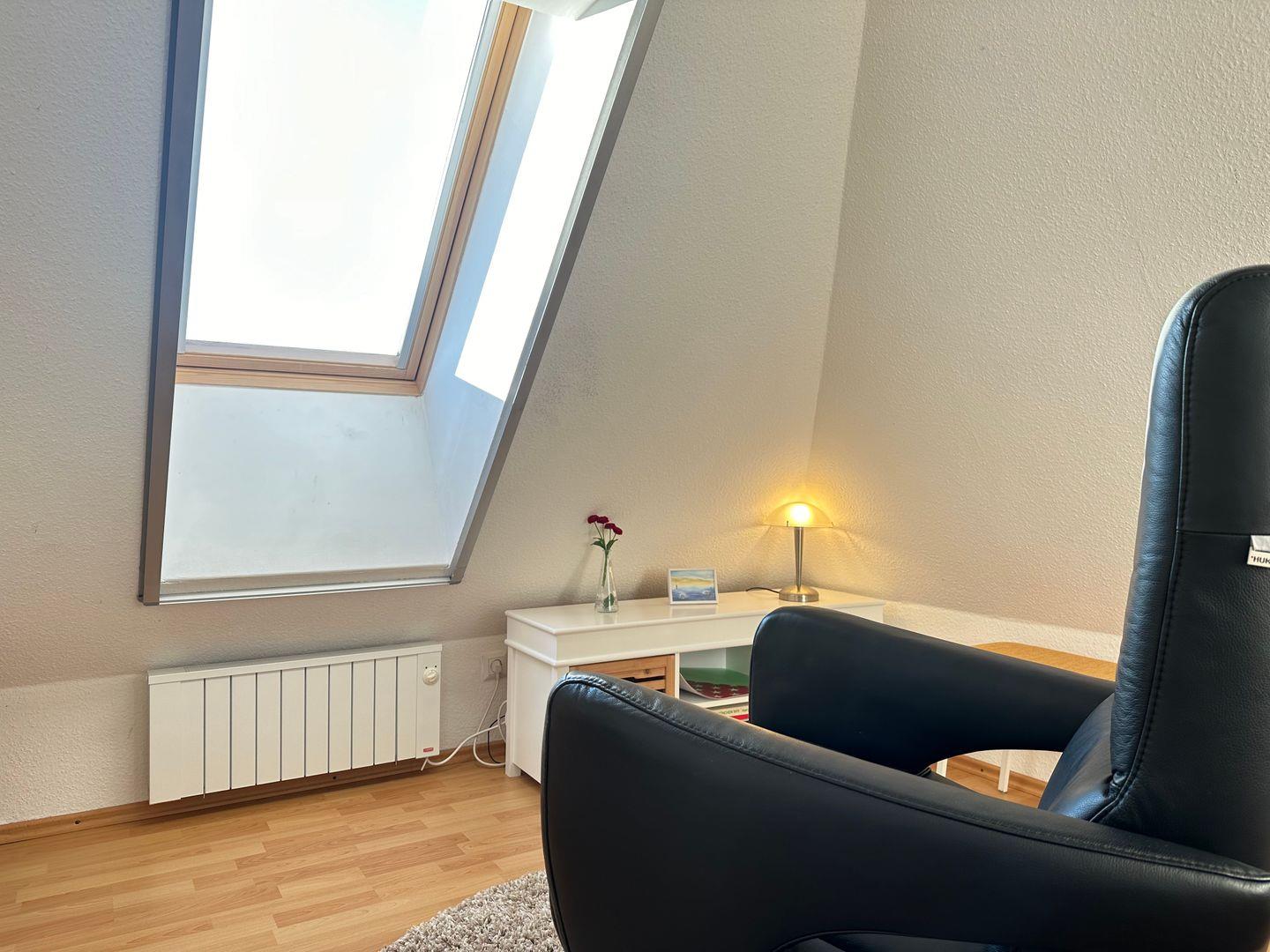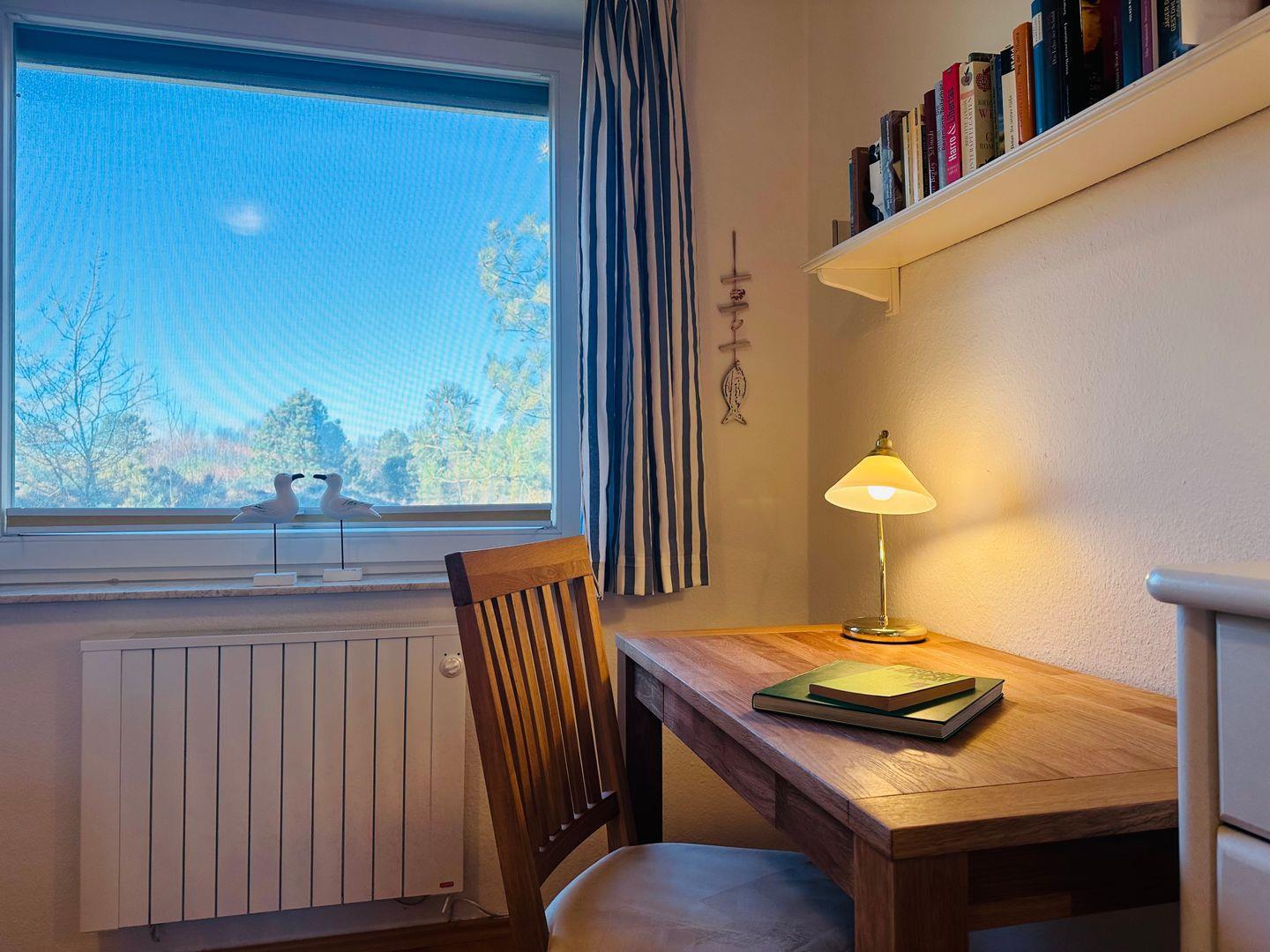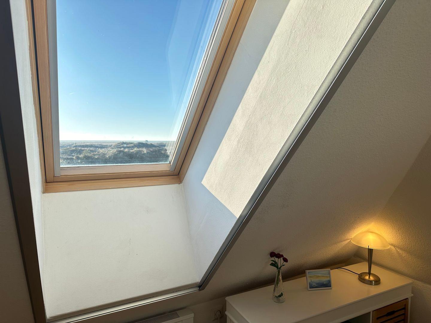 Unter dem Dach gibt es zusätzlich einen Ruhe- und Leseraum mit Ausblick über die Dünen.
