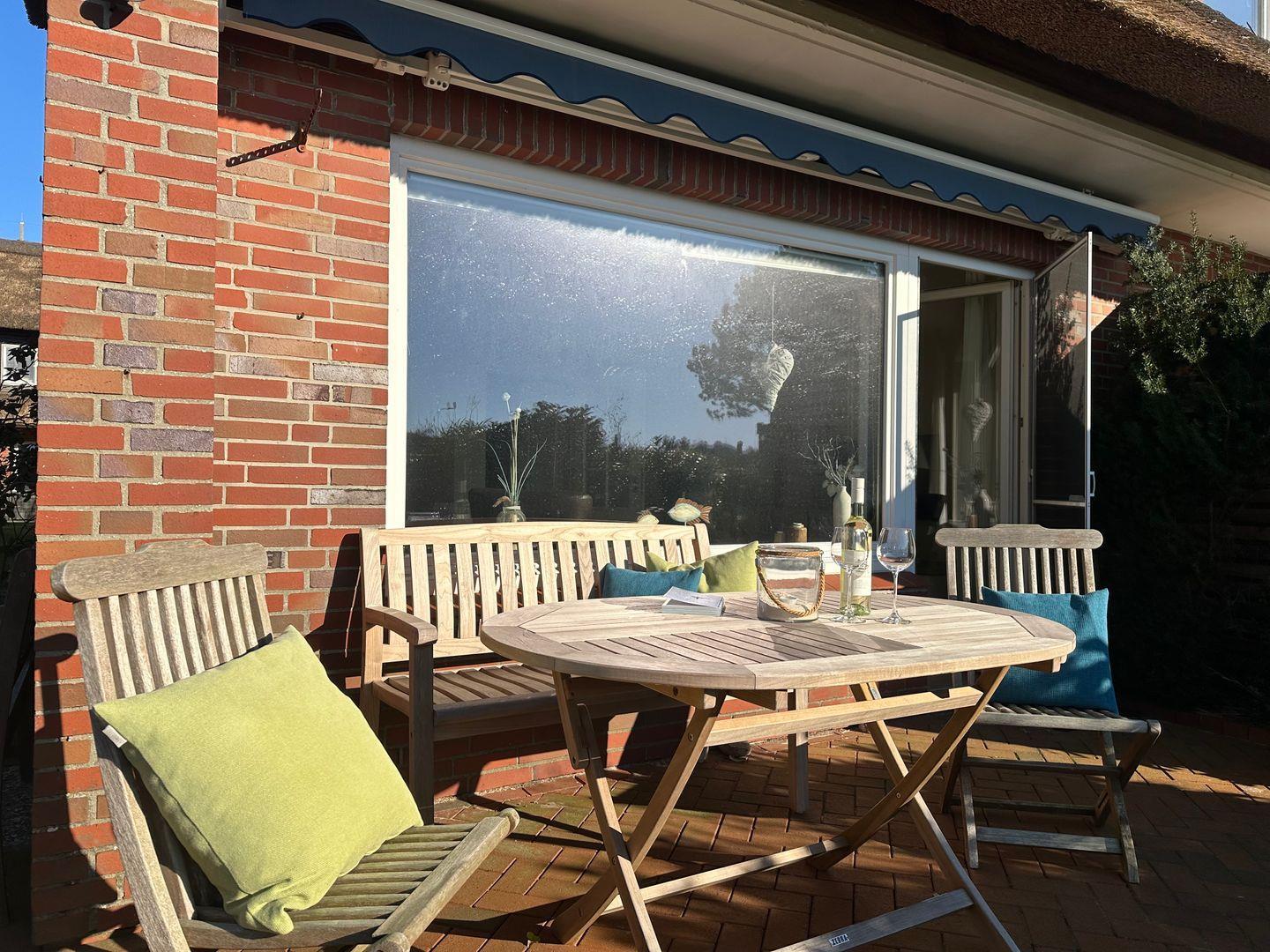 Auf der Terrasse im Garten genießt man das Frühstück & Essen mitten in der Natur.