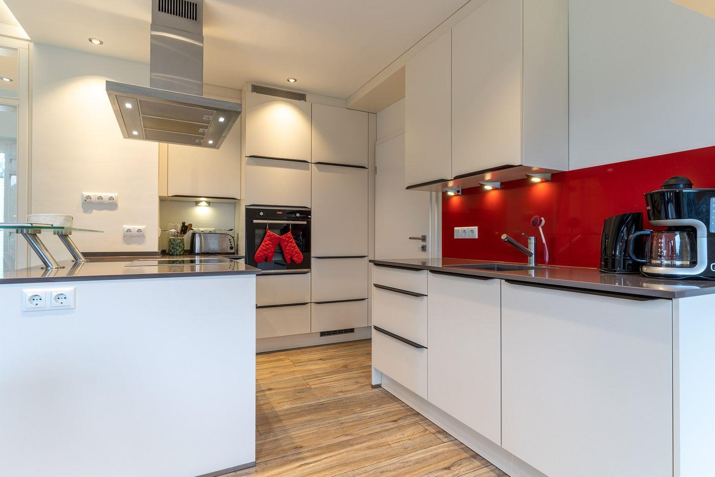 Die Küche ist komplett ausgestattet und bietet alles, was Sie für einen gelungenen Urlaub benötigen. Cerankochfeld, Kaffeemaschine, Mikrowelle, Geschirrspülmaschine, Wasserkocher, Mixer, Toaster, Pürierstab sowie ausreichend Besteck und Geschirr für jeweils 6 Personen stehen zur Verfügung.