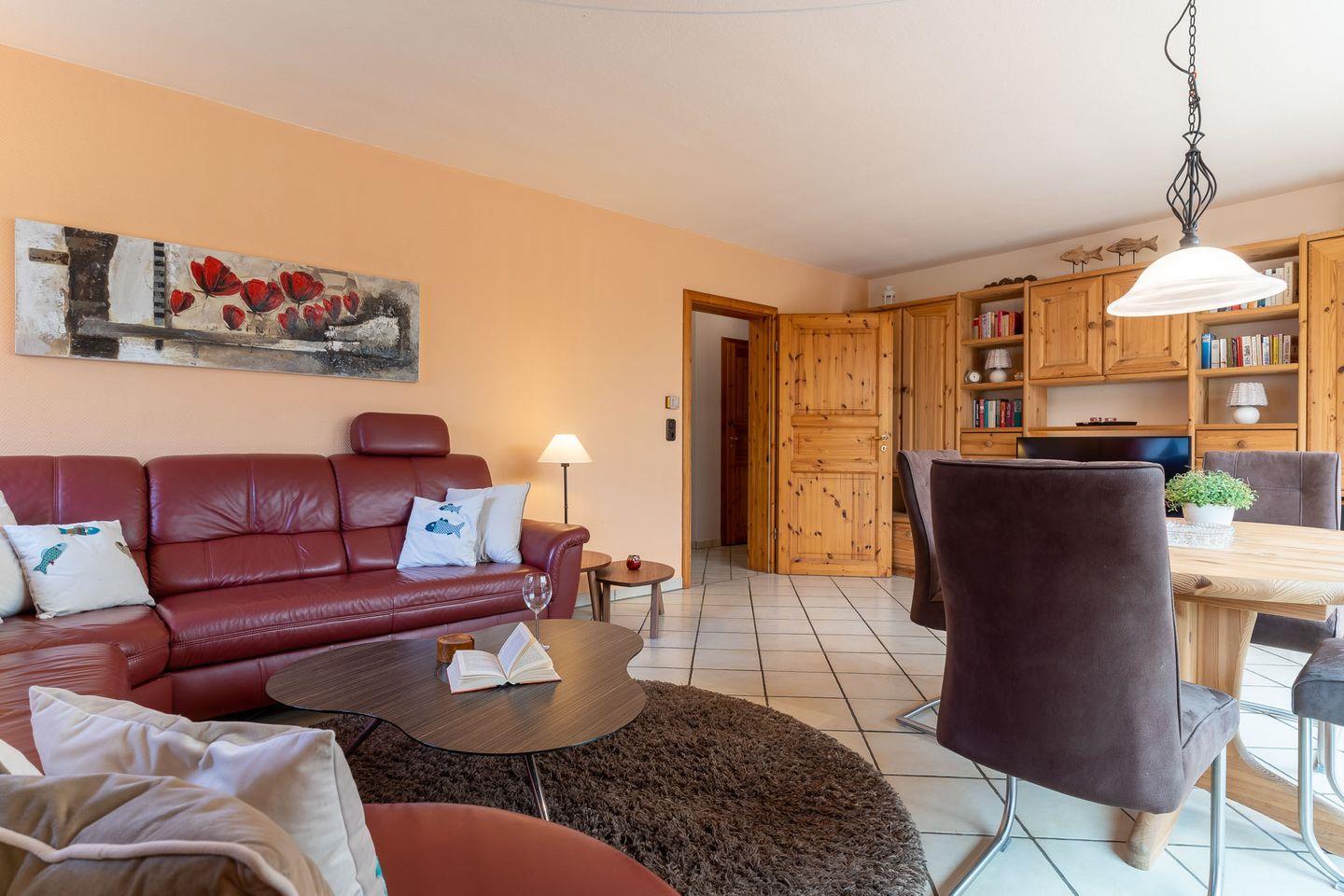 Willkommen in dieser geräumigen, stilvoll eingerichteten Erdgeschosswohnung mit etwa 100 qm Wohnfläche! Hier können Sie Ihren Urlaub in vollen Zügen genießen und sich rundum wohlfühlen. Die Wohnung verfügt über einen gemütlichen Wintergarten sowie eine eigene Terrasse mit Gartenmöbeln, auf der Sie bei schönem Wetter entspannen können.