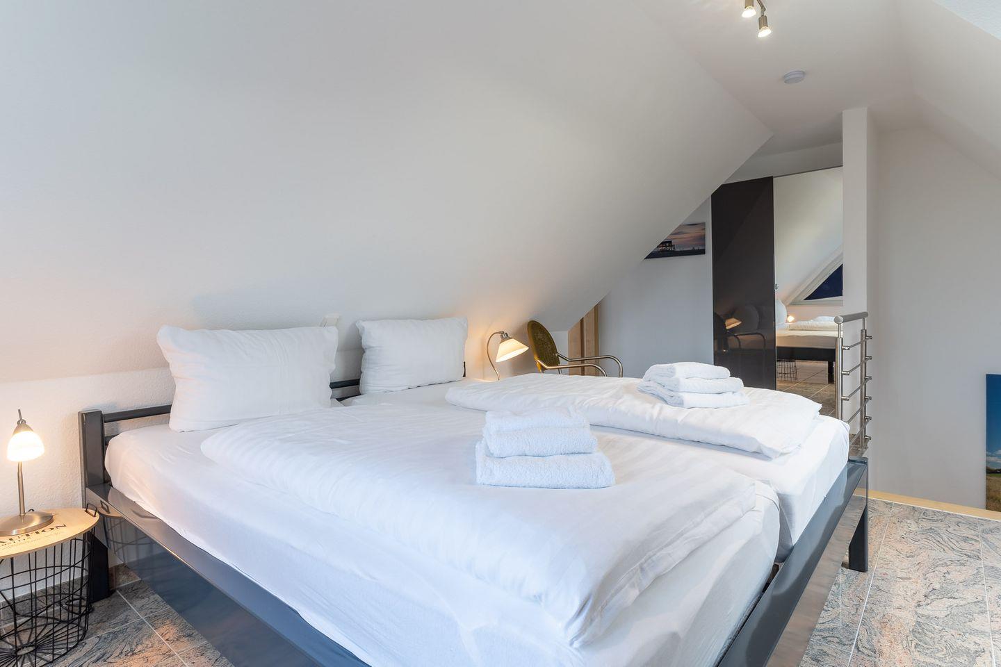 Willkommen in dieser komfortablen und traumhaft gelegenen 3-Zimmer-Ferienwohnung direkt am Meer. Die Wohnung erstreckt sich über das Ober- und Dachgeschoss des Hauses "Eriel" und bietet auf zwei Ebenen ca. 65qm für bis zu 4 Personen. In idyllischer, ruhiger Lage direkt am Deich im Ortsteil Ording gelegen, genießen Sie hier die Ruhe und die unmittelbare Nähe zum Sandstrand von St. Peter-Ording. Hier können Sie nicht nur das Meer riechen, sondern auch sehen und hören.