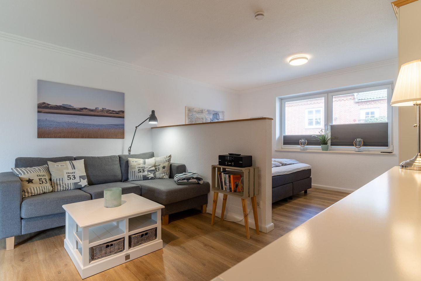 Moderne 1-Raum-Wohnung "Deichlamm" direkt am Ordinger Deich mit Terrasse und WLAN.