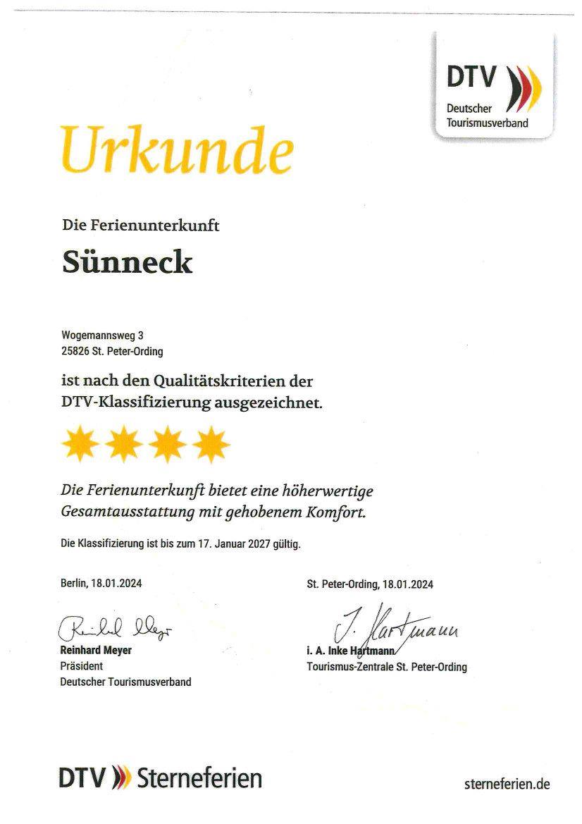 Willkommen in unserer exquisiten Ferienwohnung "Sünneck" (App. 2) im Haus Deichsfenne. Mit einer DTV-Kassifizierung von 4 Sternen und insgesamt 618 Punkten bieten wir Ihnen eine komfortable und hochwertige Unterkunft für Ihren Urlaub.