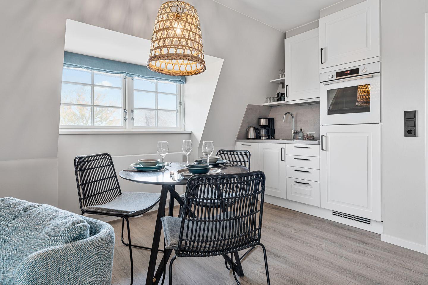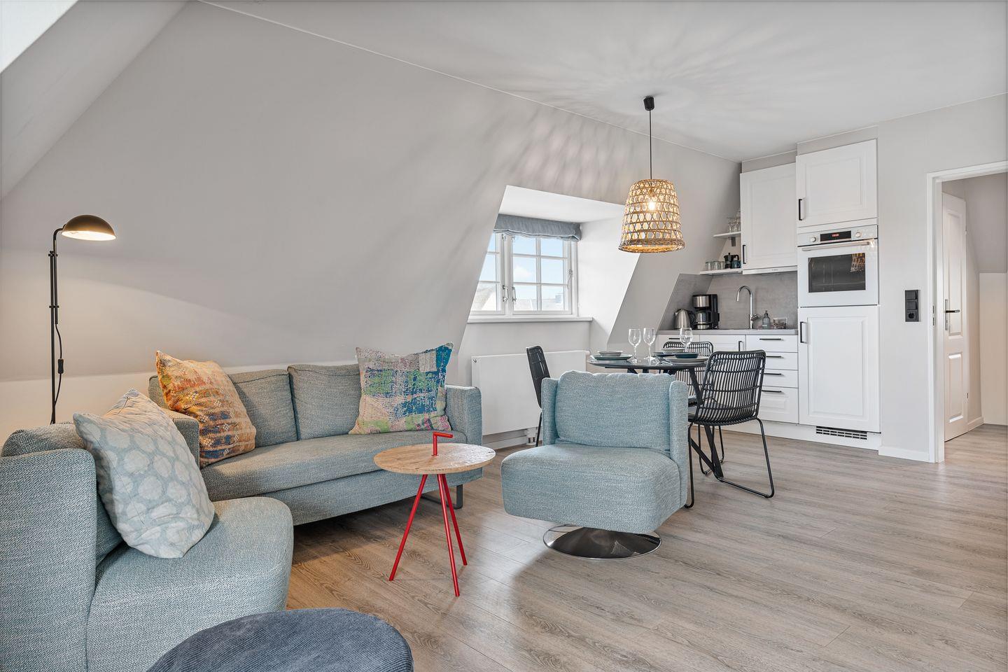 Das wunderschöne, lichtdurchflutete Appartement "Beach Lodge 3" in dem 2022 komplett renovierten "Reethaus Beach Lodge" verfügt über ca. 40 m² und bietet Platz für 1-2 Personen im 1.OG.