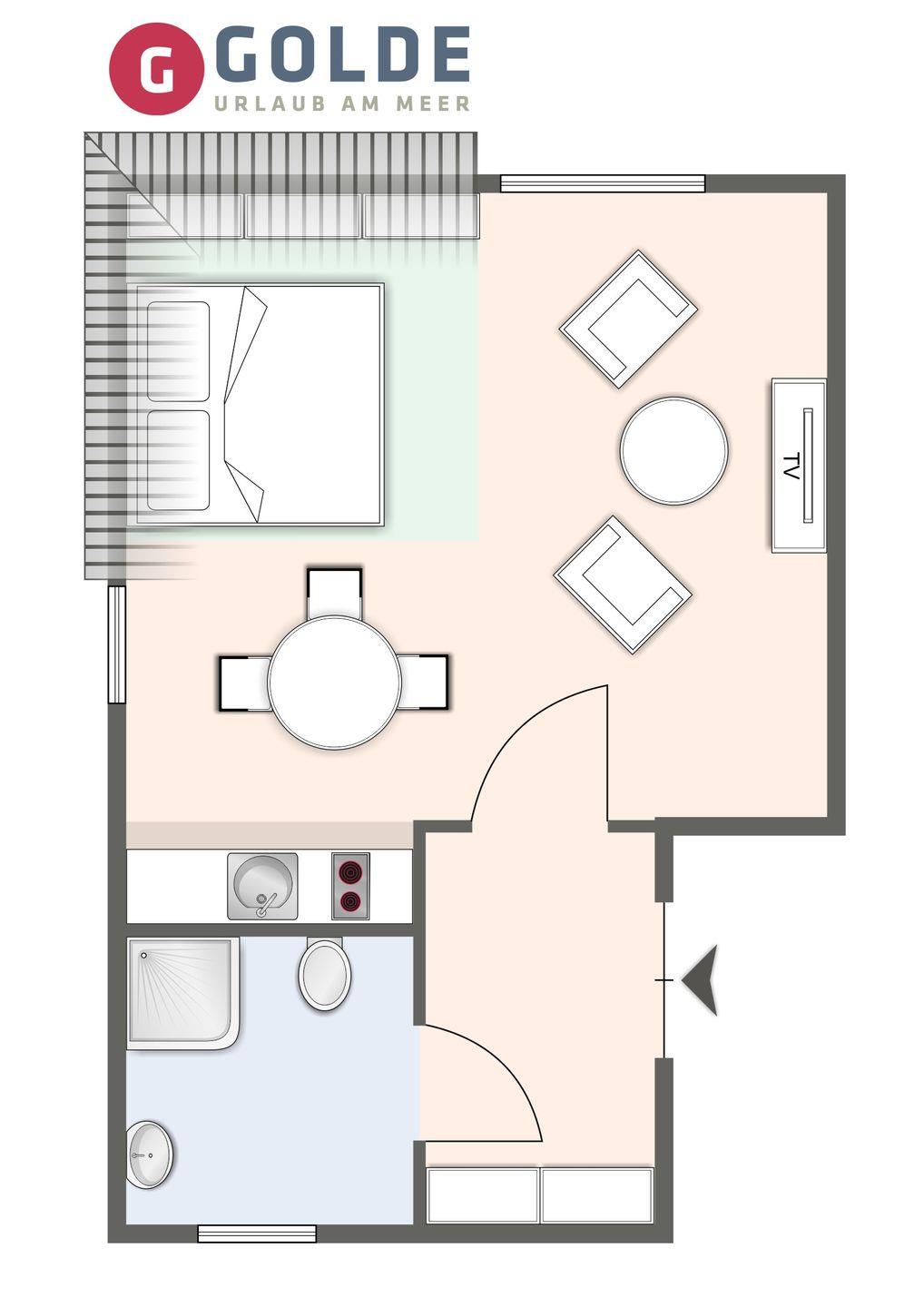 Das App. "Beach Lodge 4" in dem "Reethaus Beach Lodge" liegt im 1.OG und verfügt über ca. 30 m² Wohnfläche. Es bietet Platz für 1-2 Personen.