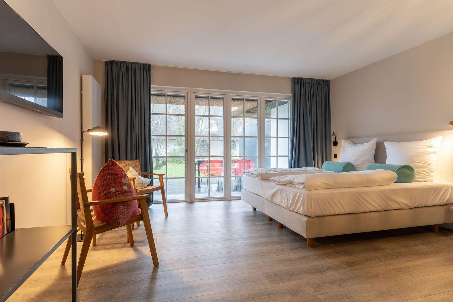 Das wunderschöne, lichtdurchflutete Appartement "Beach Lodge 5" in dem 2022 komplett renovierten "Reethaus Beach Lodge" verfügt über ca. 30 m² Wohnfläche und einer gemütlichen Terrasse.