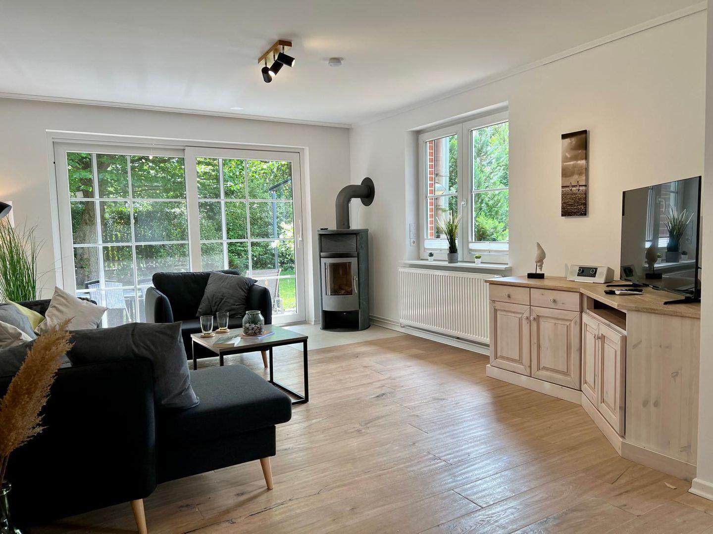 Moderne, renovierte Erdgeschosswohnung in St. Peter-Ording mit Terrasse, Garten und hochwertiger Ausstattung für erholsamen Urlaub.