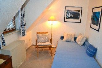 Die Ferienwohnung mit zweckmäßiger Ausstattung ist ruhig im 1. Obergeschoss gelegen und bietet mit einem kleinen angegliederten Südbalkon eine herrliche Aussicht auf den hauseigenen Garten. Eine engere Raumspartreppe führt in den oberen Bereich der Ferienwohnung. Seedeich. Nur ca. 10 min. Fußweg zum Ortsteil Bad mit Kurzentrum und Geschäften. Der gemütliche Ortsteil Dorf mit seinen vielen kleinen Läden, Restaurants und Cafés ist ebenfalls in 10 min. zu Fuß erreichbar.