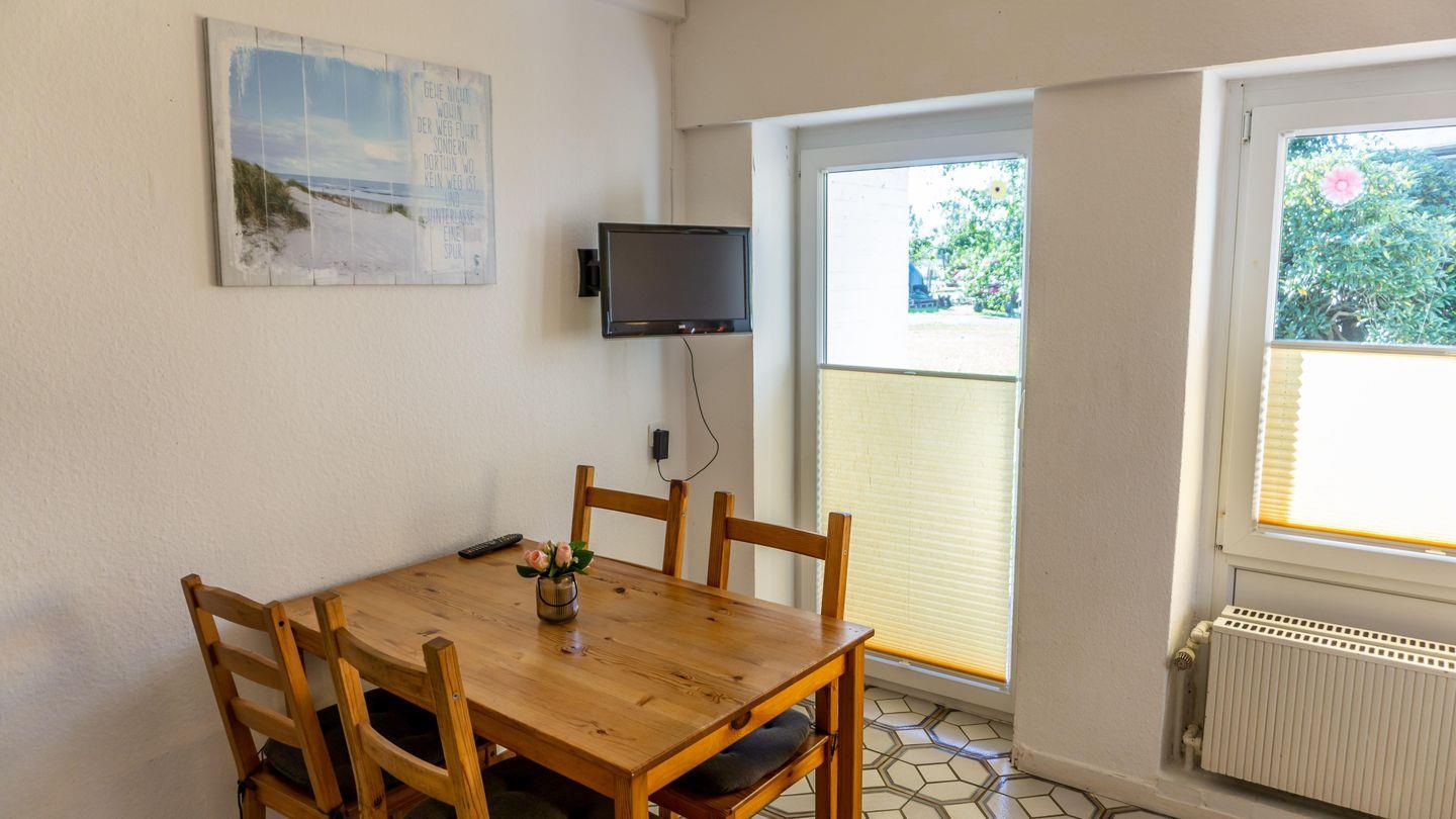 Wohnbereich: Schlafsofa, Essbereich, SAT-TV