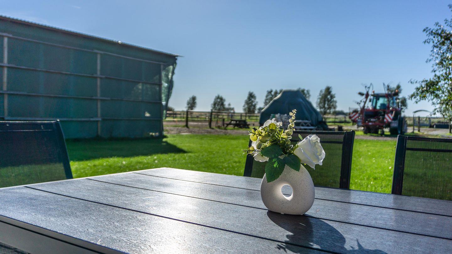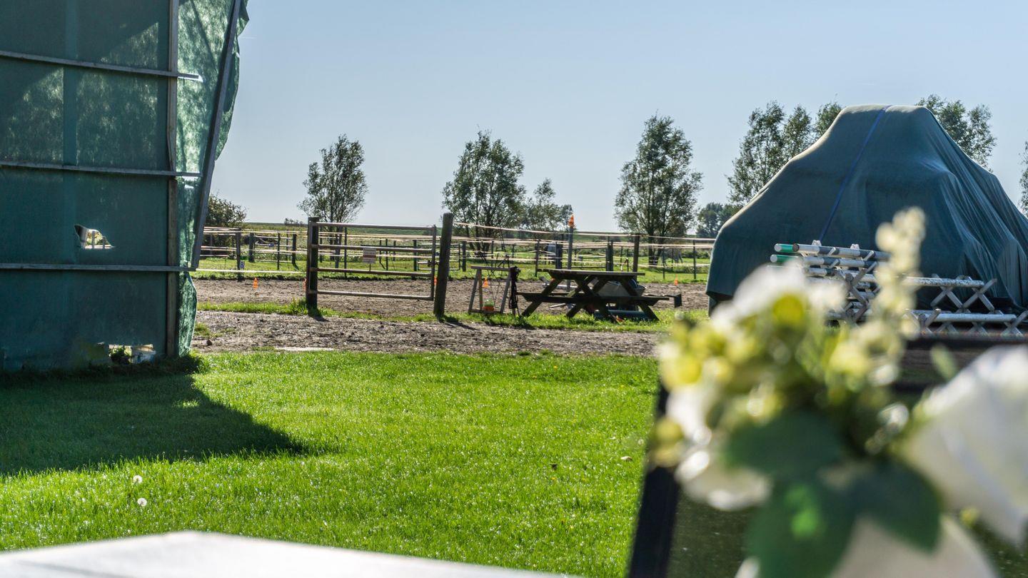 Gemütliche Ferienwohnung auf dem Reiterhof Immensee B in St. Peter-Ording mit Terrasse und Blick auf Pferdekoppeln.