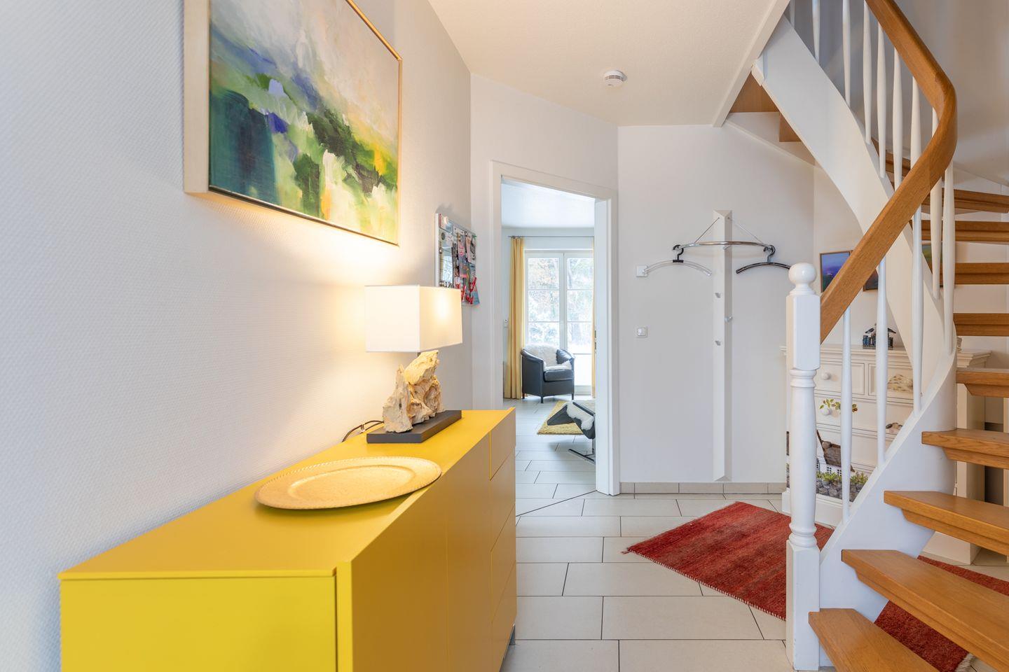 Die 90 qm große Haushälfte über drei Ebenen bietet Platz für bis zu 4 Erwachsene und 2 Kinder.