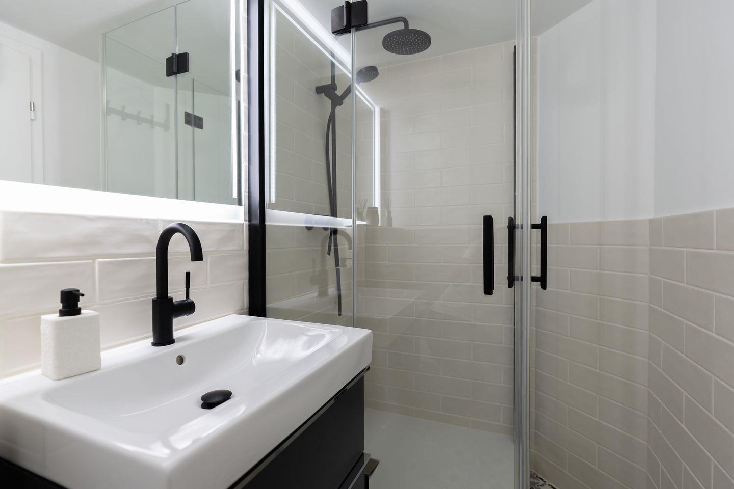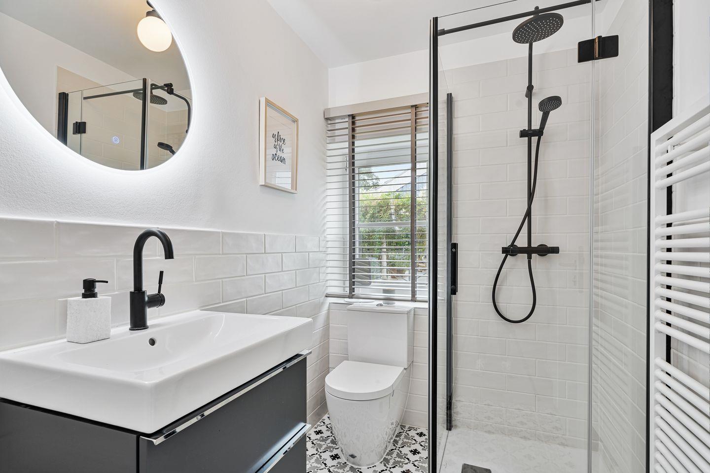 Das erste Schlafzimmer von zwei verfügt über ein komfortables Doppelbett (180x200cm) mit Kleiderschrank. Das elegante Badezimmer beeindruckt mit einer modernen bodengleichen Regen-Dusche, WC und einem Föhn für Ihren Komfort.