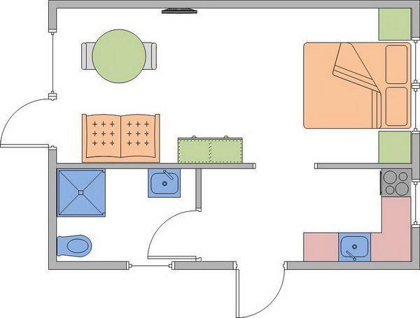 Die Wohnfläche von ca. 30 m² verteilt sich ebenerdig wie folgt: